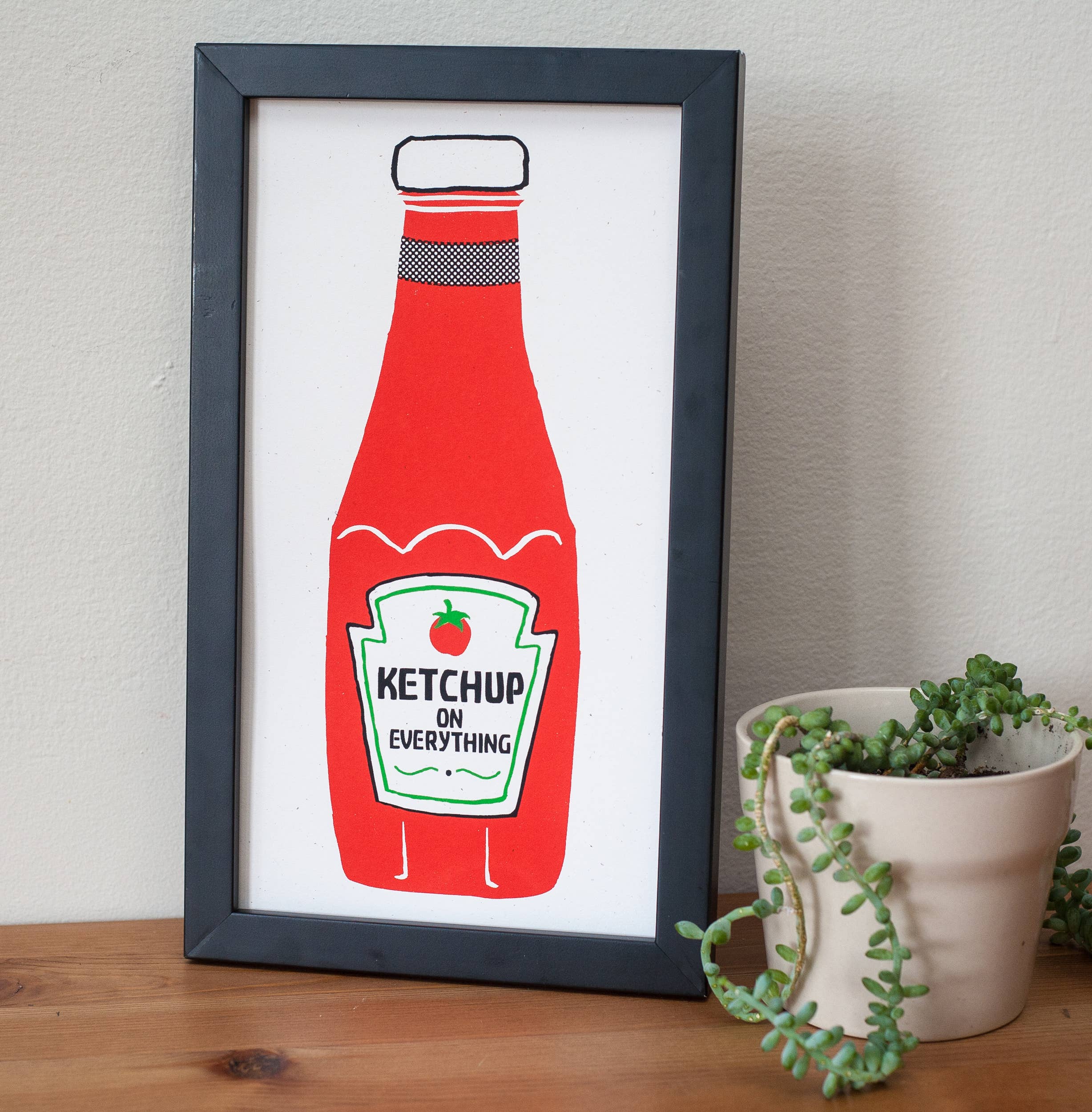 Questa stampa gialla a forma di banana starà benissimo sulla parete accanto a qualsiasi telefono fisso, o anche accanto al telefono cellulare sul comodino. Questa serigrafia bicolore misura 11" x 17". Giallo e marrone.