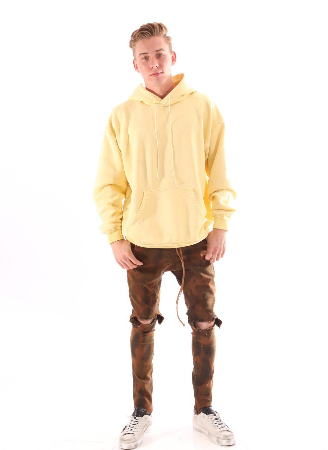 Il Déjà Vu Sweats è disponibile in marrone e presenta una vestibilità rilassata ben progettata, tasche, zip interna color crema e argento alle caviglie, elastico in vita e chiusura con laccetti in pelle sul davanti. Dettagli: 98% cotone, 2% spandex. Lavare a mano o in lavatrice a freddo. Asciugare in asciugatrice a basso Fabbricato negli Stati Uniti.