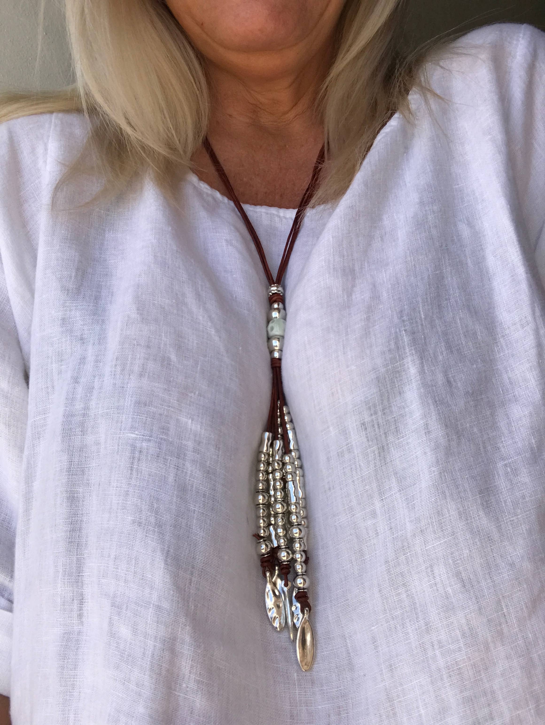 Creata per le ragazze bohémien, questa collana boho in tormalina nera in lariat è un gioiello sorprendente per mostrare il tuo lato selvaggio. Indossala con una maglietta bianca e dei jeans per un look rilassato o indossa un abito morbido a collo basso: comunque la indossi, questa collana appariscente farà parlare di sé.