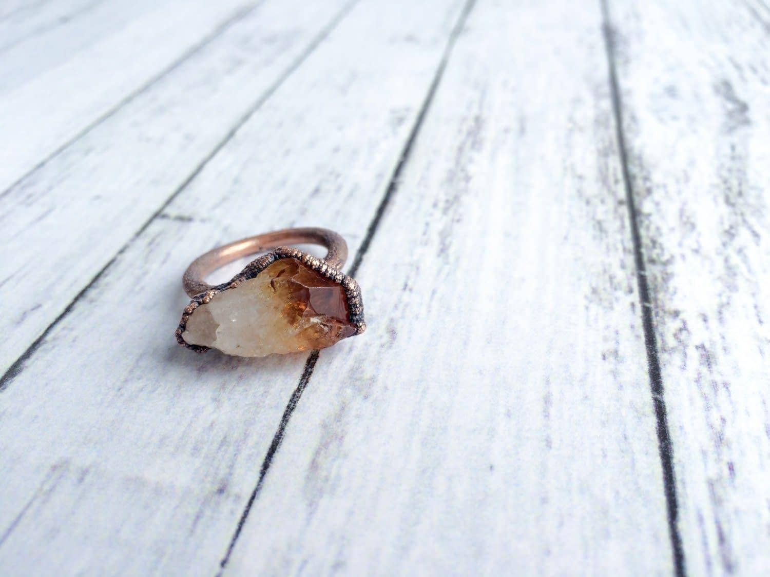 Anello in citrino e rame riproposto all'ingrosso