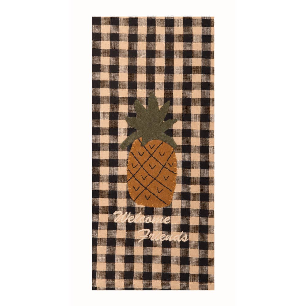 Accogli un tocco di fascino e fantasia nella tua casa con il nostro Asciugamano di Benvenuto con Ananas. Misurando 18" x 28", questo delizioso asciugamano è realizzato in cotone quotidiano, garantendo sia durata che morbidezza per l'uso quotidiano. L'asciugamano presenta un'applicazione di ananas splendidamente dettagliata, simbolo di ospitalità, su uno sfondo nero classico che si adatta a qualsiasi arredamento country o primitivo. La sua generosa dimensione lo rende perfetto per una varietà di usi, dall'asciugatura dei piatti all'aggiunta di un accento decorativo alla tua cucina o bagno. Che tu stia cercando di migliorare la tua casa o di trovare un regalo premuroso, questo Asciugamano di Benvenuto con Ananas porterà sicuramente calore e stile a qualsiasi spazio. Abbraccia lo spirito di benvenuto e ospitalità con questo pezzo affascinante e funzionale.