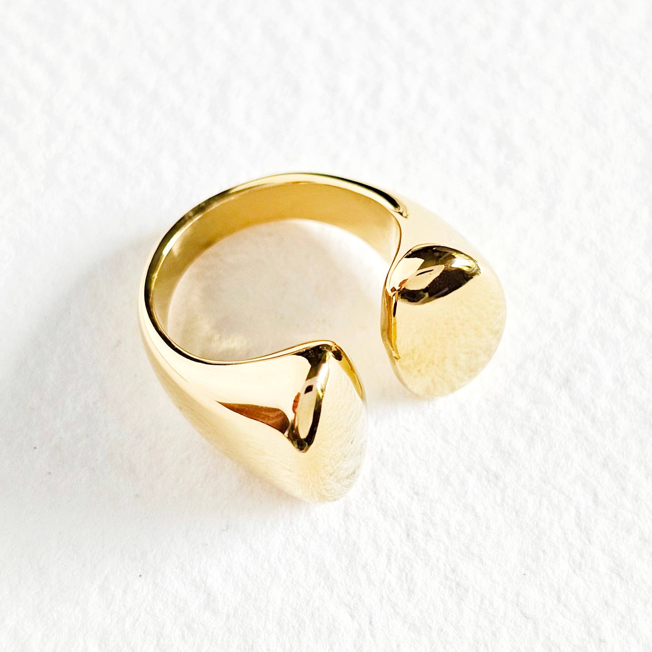 Anello in argento massiccio a doppia sfera placcato in oro 18 carati moderno