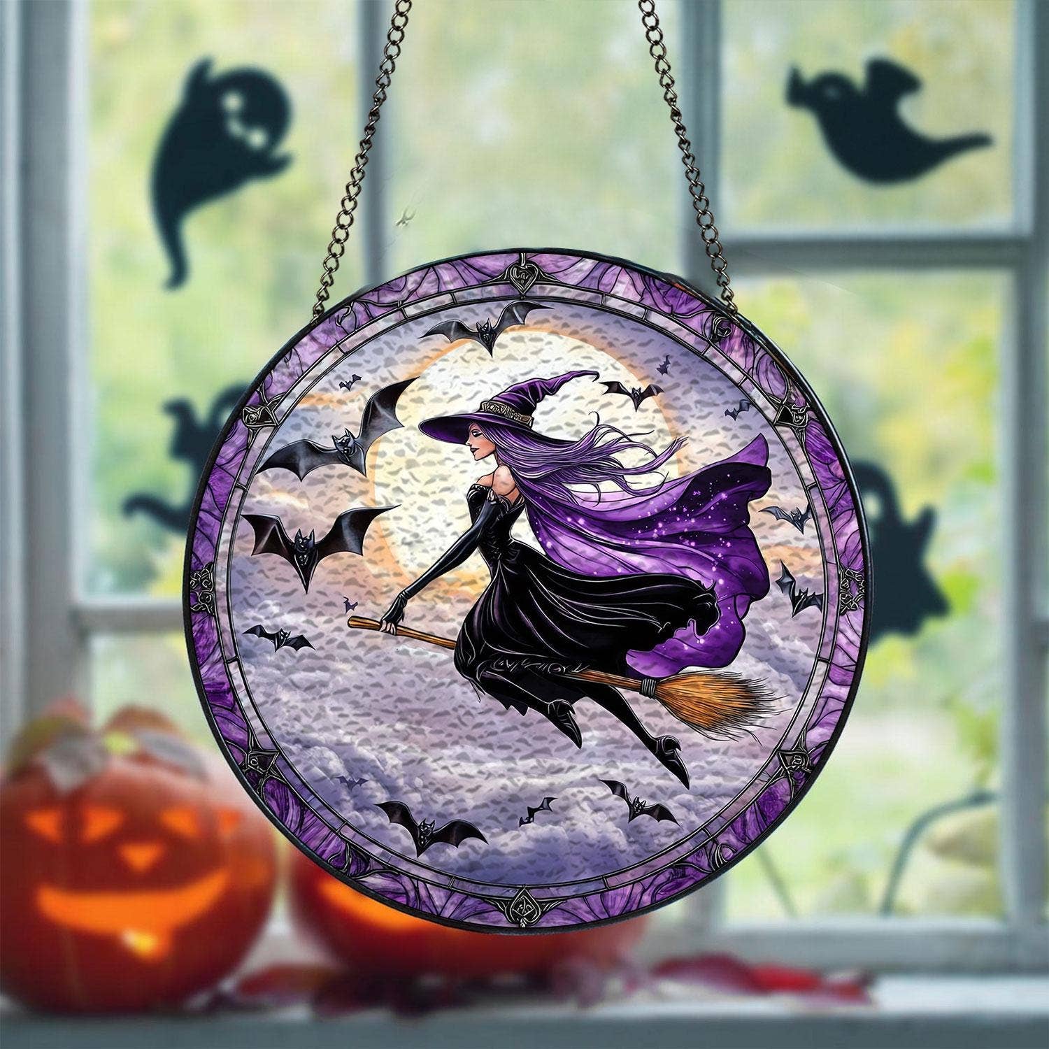 Suncatcher in vetro colorato "Girls Will Be Girls", decorazione d'arte della strega di Salem Suncatcher in vetro colorato per appendere alla finestra - Materiale: vetro da 0,5 cm - Strisce di zinco rinforzate lungo il bordo esterno - Catena in metallo nero e ventosa per un'installazione facile - Disponibile in 6 dimensioni: 3,5 pollici, 4 pollici, 6 pollici, 7,8 pollici, 9,8 pollici e 11,8 pollici per completare perfettamente il tuo spazio. - Superficie facile da pulire che rimane fresca e nuova nel tempo - Stampe vivaci e durature con speciale rivestimento opaco assicurano che i colori rimangano vividi e vibranti, anche dopo anni di esposizione alla luce solare. - Imballato con cura con schiuma Se hai domande, non esitare a contattarci