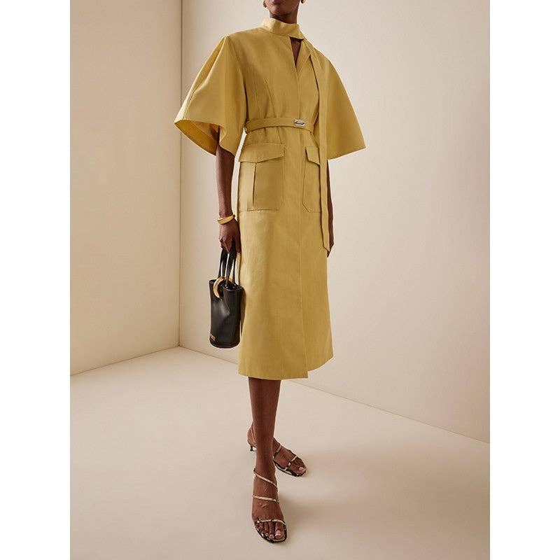 Ancora nessuna recensione per Abito lungo a trapezio con stampa floreale e scollo rotondo.
