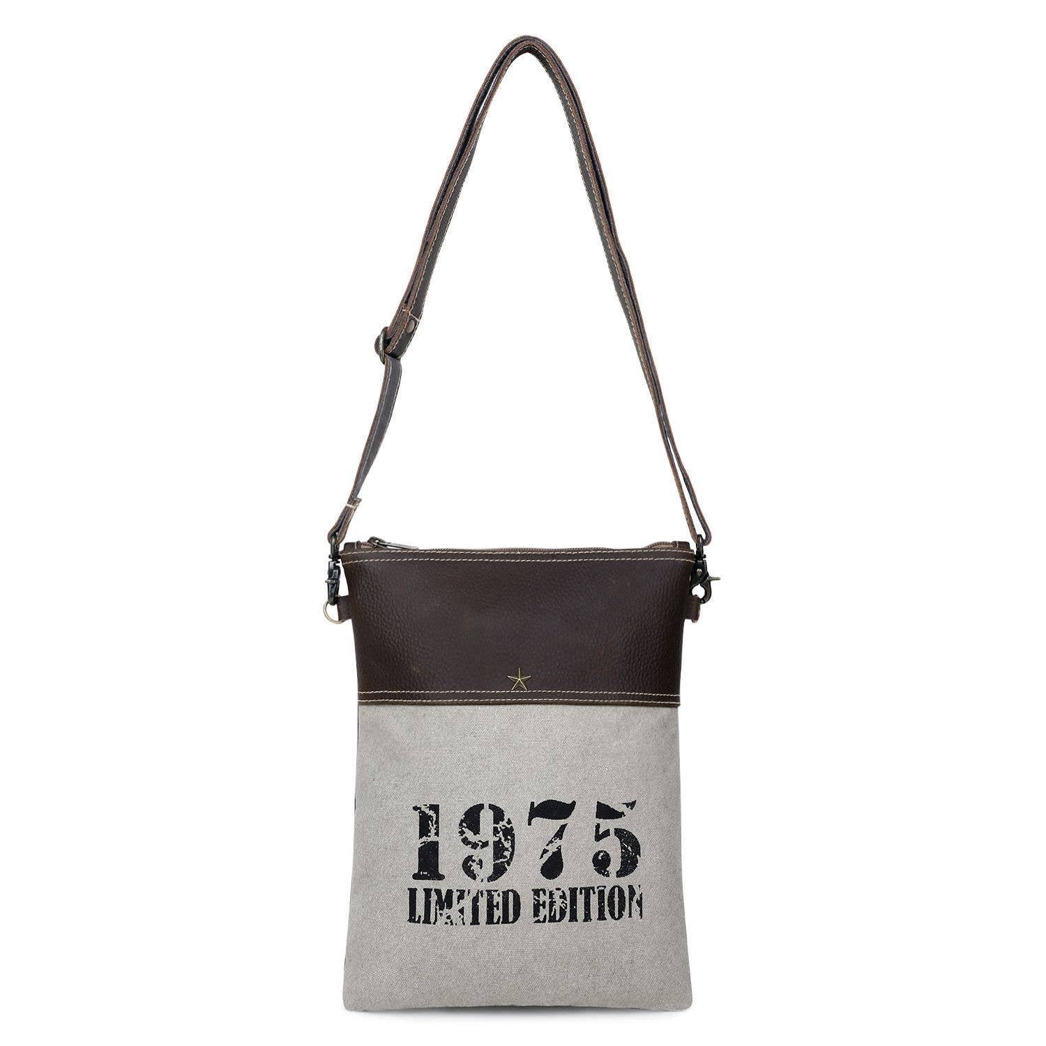 Unisciti alla tendenza dell'upcycle con le nostre borse a tracolla in tela e pelle, offerte in sei diverse combinazioni di colori e stampe. Ogni borsa racconta una storia di sostenibilità e stile • Codice UPC/a barre: 8904424104394 • Categoria: Borse in tela riciclata • Sottocategoria: Borse a tracolla • Materiale: tela e pelle riciclate • Utilità (esterna): 1 tasca a bustina anteriore e 1 tasca con zip sul retro. • Utilità (interna): scomparto principale con 1 tasca con zip e 2 tasche a bustina. • Fodera: logo Step in policotone stampato • Collezione: La collezione Vintage Splash • Raccordi: hardware premium con finitura anticata • Dimensioni (in pollici): 11* 9* 3,5 • Maniglia: N/A • Spalla: tracolla regolabile da 54" • Chiusura: cerniera YKK originale