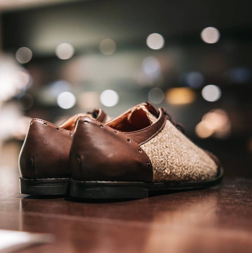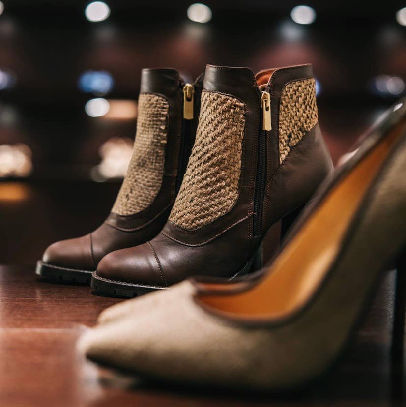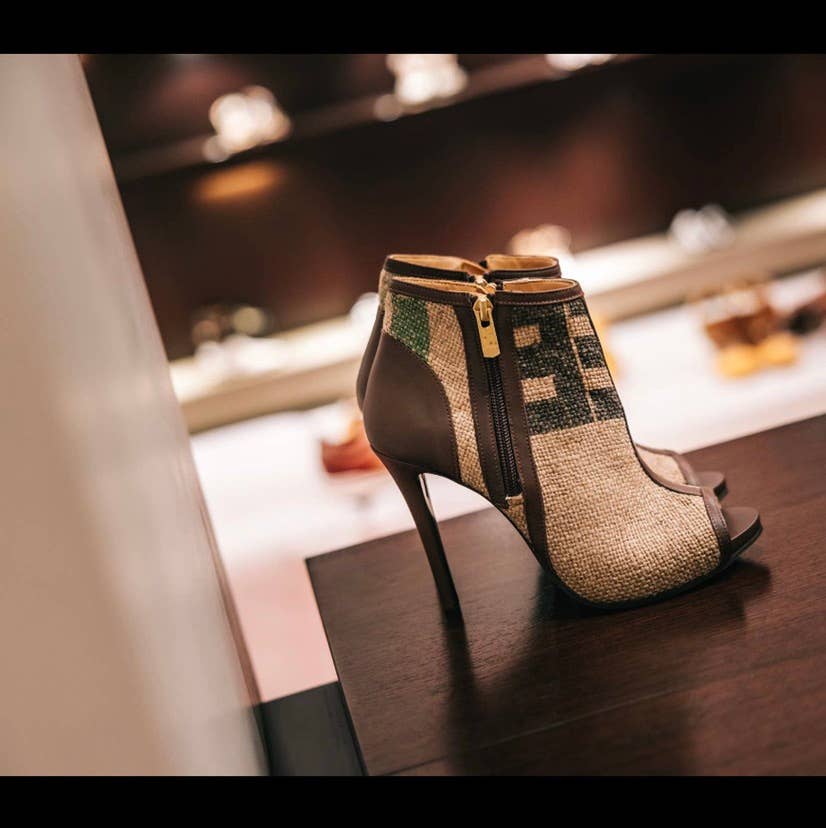 Stivaletti Peep Toe in tela da caffè