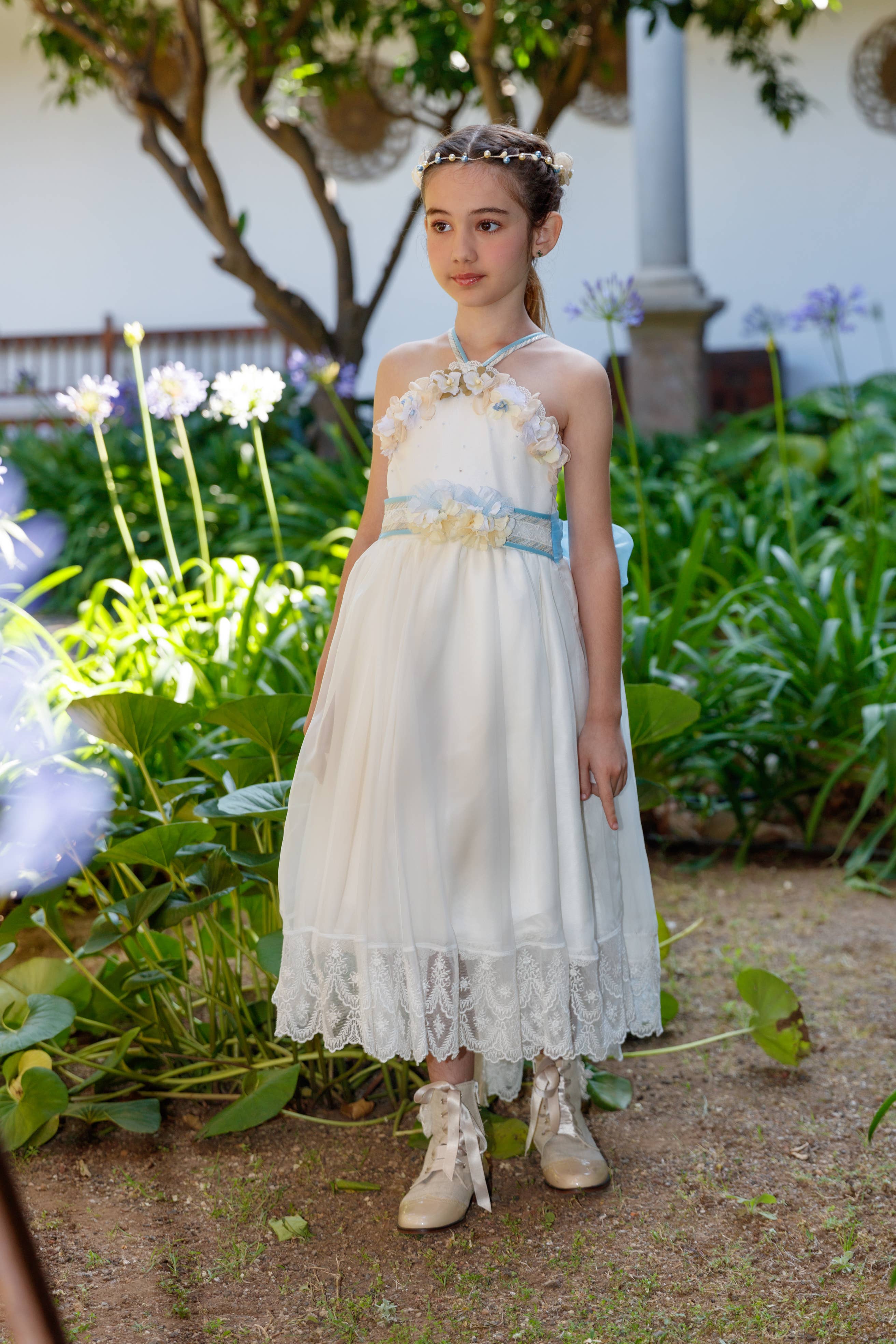 Vestito per bambina Ana Pearl in bianco per primo compleanno
