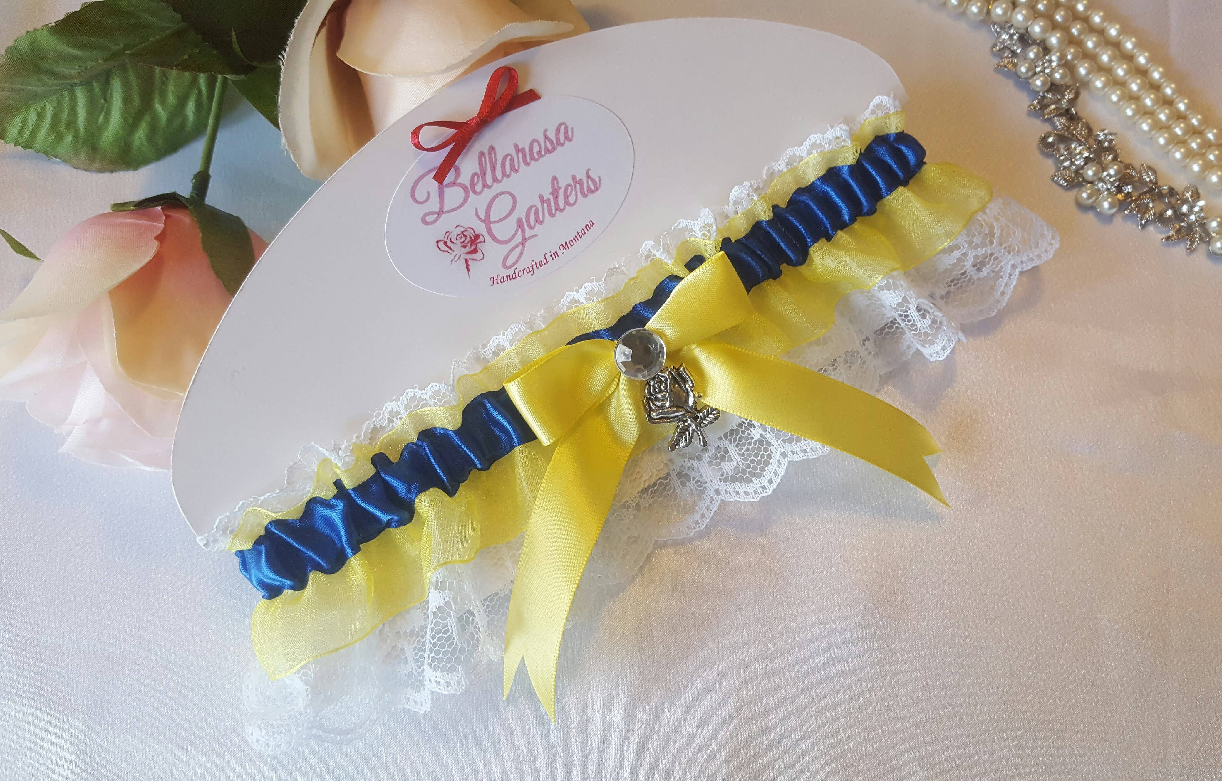 Set di giarrettiere da sposa in raso blu reale e pizzo avorio all'ingrosso