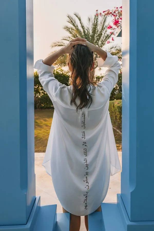 Taglia M circa 132 cm, taglia L circa 140 cm. Realizzata in una miscela leggera di cotone e rayon. Comprende 3 bottoni a clip nascosti sul davanti.