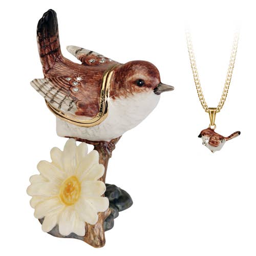 Uno splendido cofanetto portagioie con gioielli. Il Puffin è fuso a mano in peltro e poi placcato in oro. Dipinto a mano individualmente con smalti dai colori vivaci. Tutti i portagioie contengono una collana con ciondolo abbinato e sono confezionati in una confezione regalo. Altezza 7,5 cm.