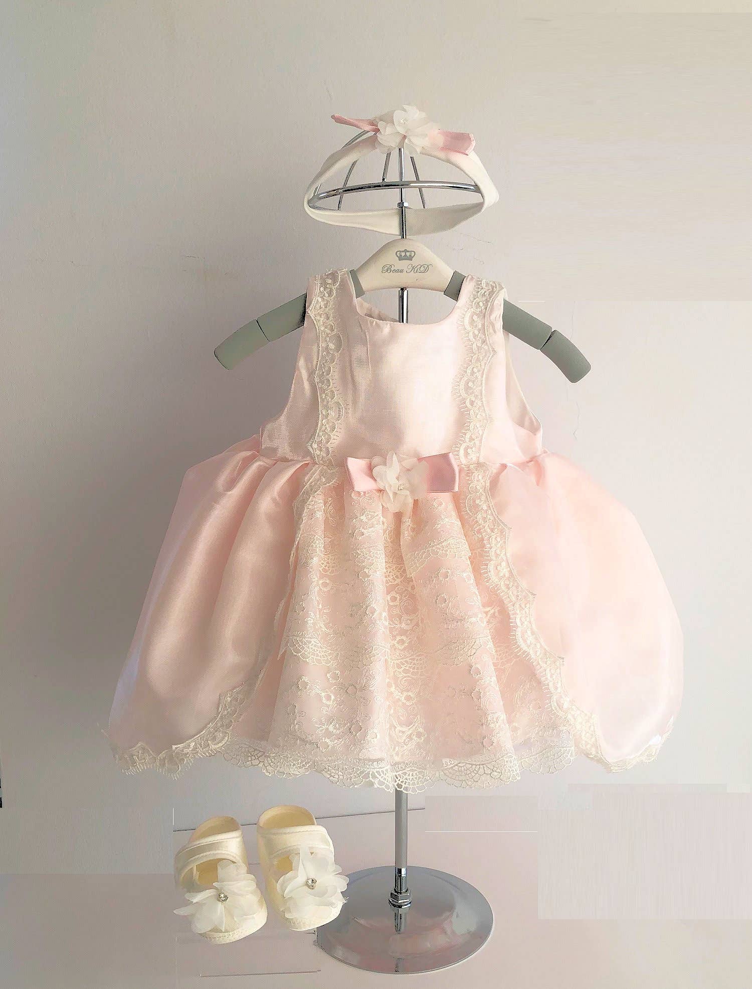 Abito per battesimo in satin e tulle rosa per bambina all'ingrosso