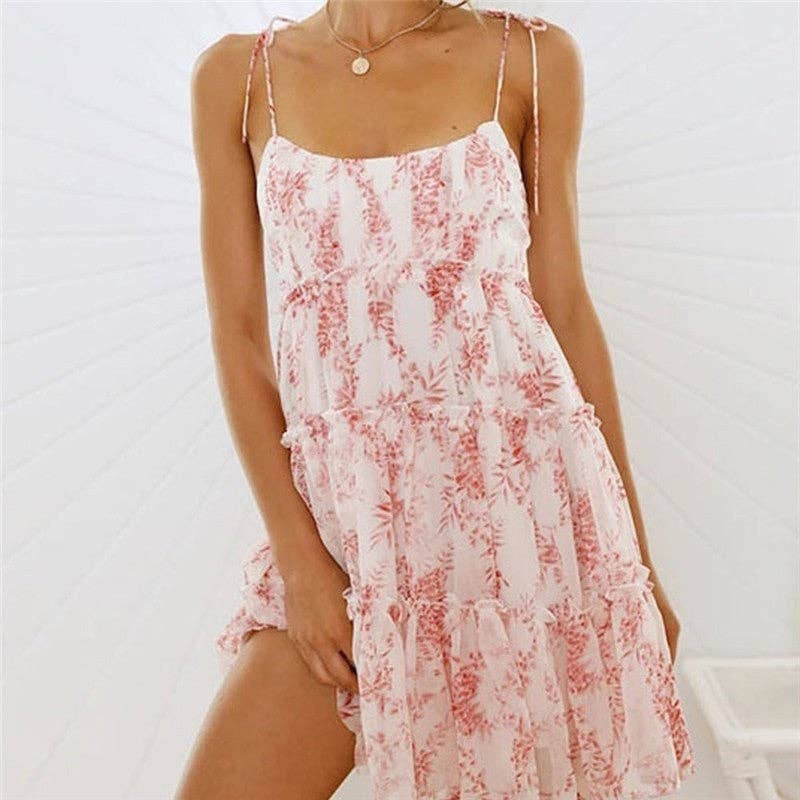 Vestito corto con bretelle a fiocco senza schienale all'ingrosso