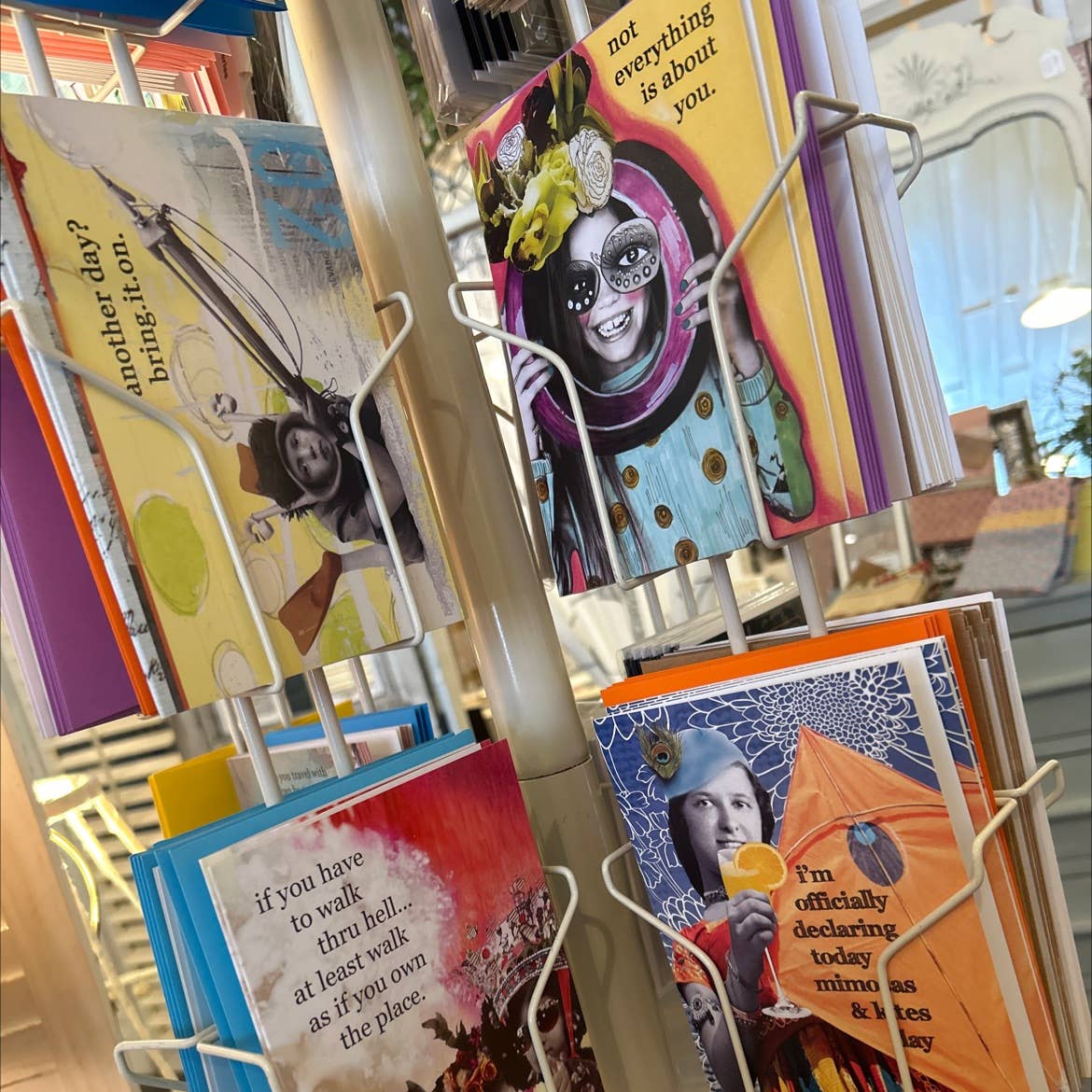 Amiamo tutto nella sua linea, e lo fanno anche i nostri clienti! Prodotti unici, divertenti e fantastici che le persone con senso dell'umorismo apprezzano! Se sento risate nel mio negozio, so che stanno guardando le carte o gli adesivi di Erin! Altamente raccomandato!
