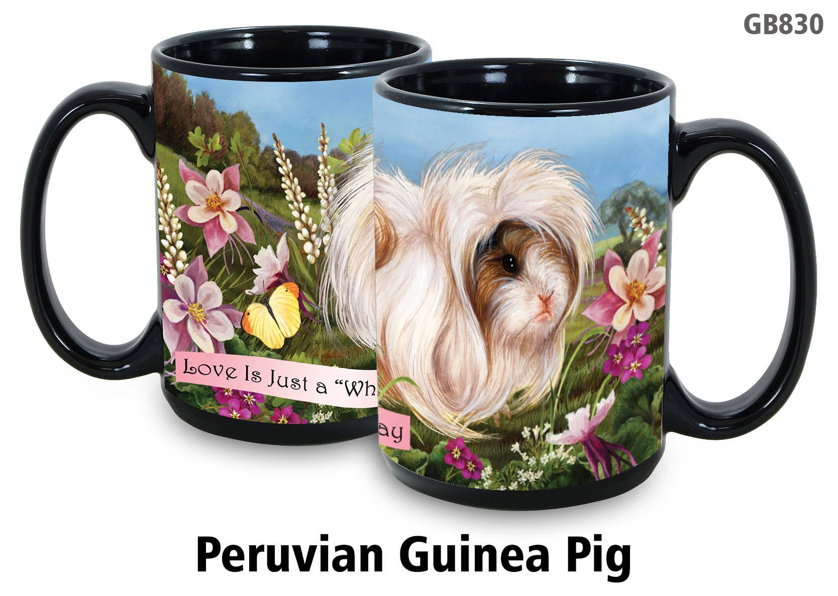 Tazza da giardino senza peli, motivo porcellino d'India, 388 ml, colore: Nero all'ingrosso