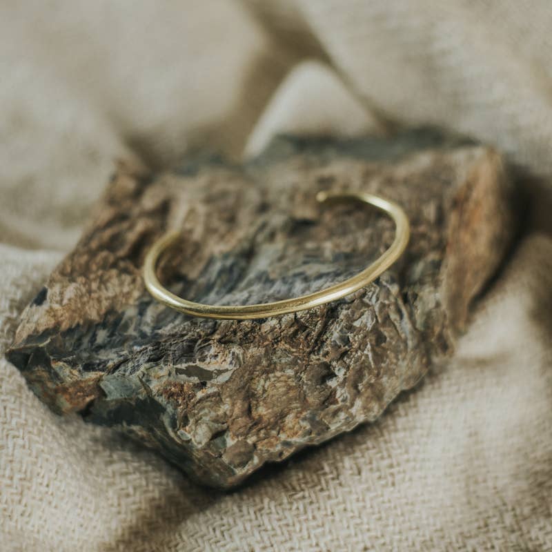 Migliora il tuo look formale con il Gaia Stacker di Commonform. Questo bracciale minimalista è un pezzo unico, realizzato in ottone massiccio color oro giallo, che incarna un tema della natura. È impilabile e offre versatilità al tuo stile. I nostri prodotti sono di provenienza etica e sono disponibili in imballaggi riciclabili. Goditi questo pezzo unico, realizzato con cura a Bozeman, Montana.
