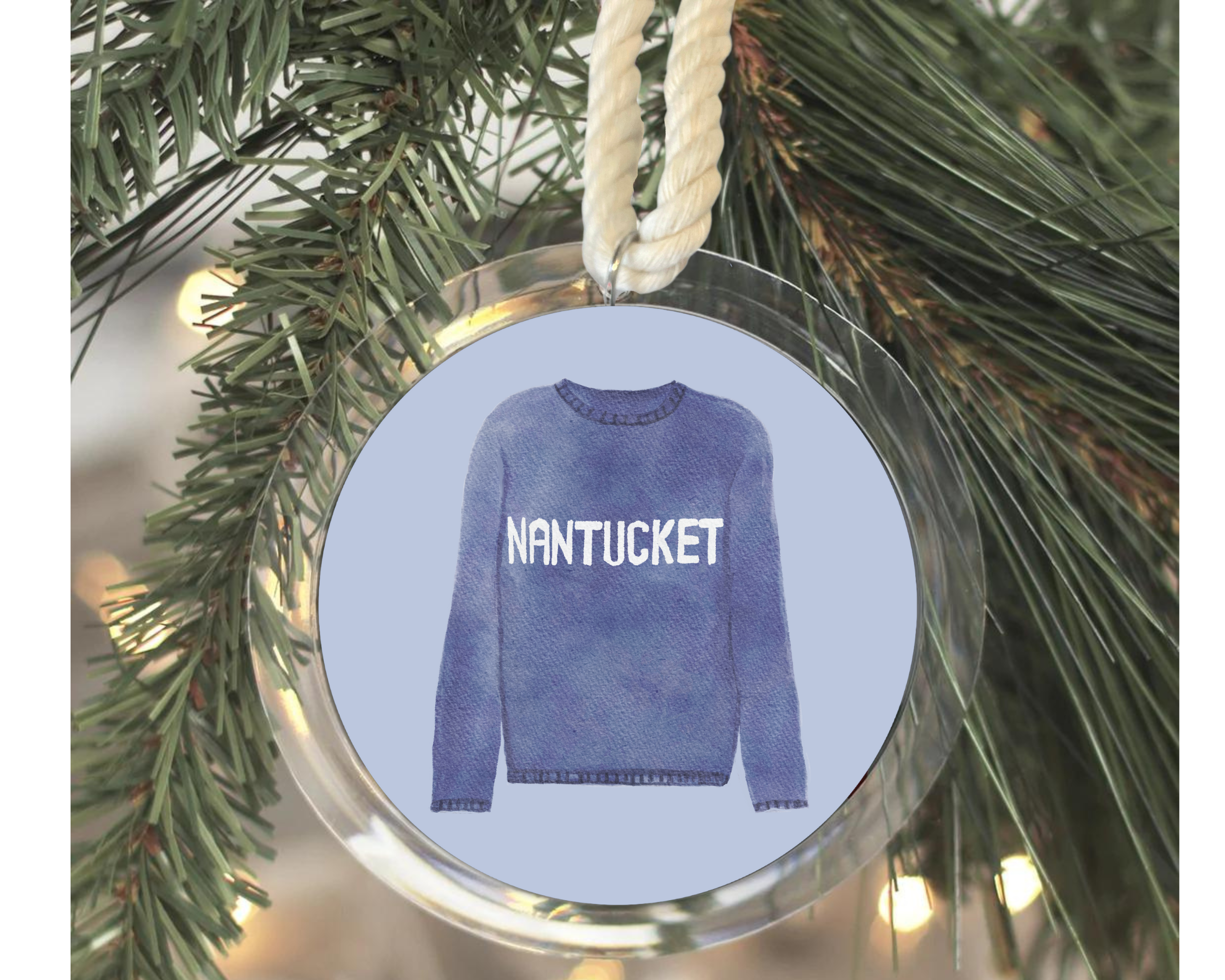 Ornamento di circa 8,9 cm Immagine stampata di alta qualità sigillata tra un involucro acrilico L'ornamento è a doppia faccia Appendino in corda nautica annodata attaccato Grafica originale di WonderfullyWrittenco Confezione regalo trasparente inclusa