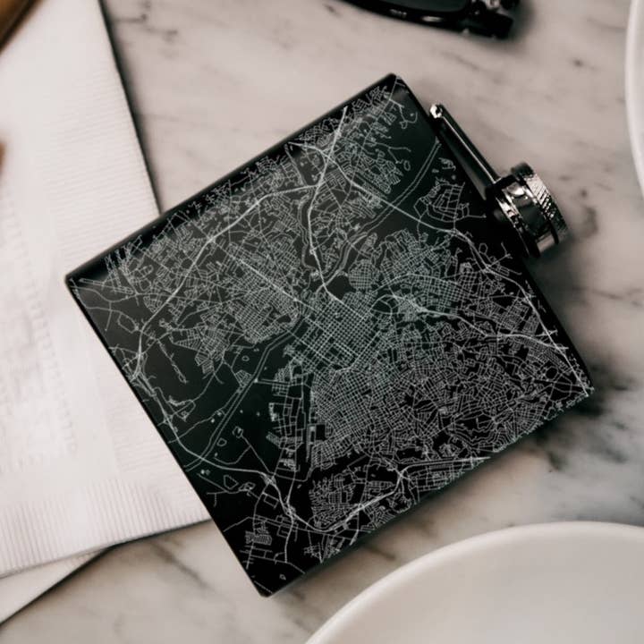 Catonsville MD - Fiaschetta con mappa, colore: Nero opaco all'ingrosso