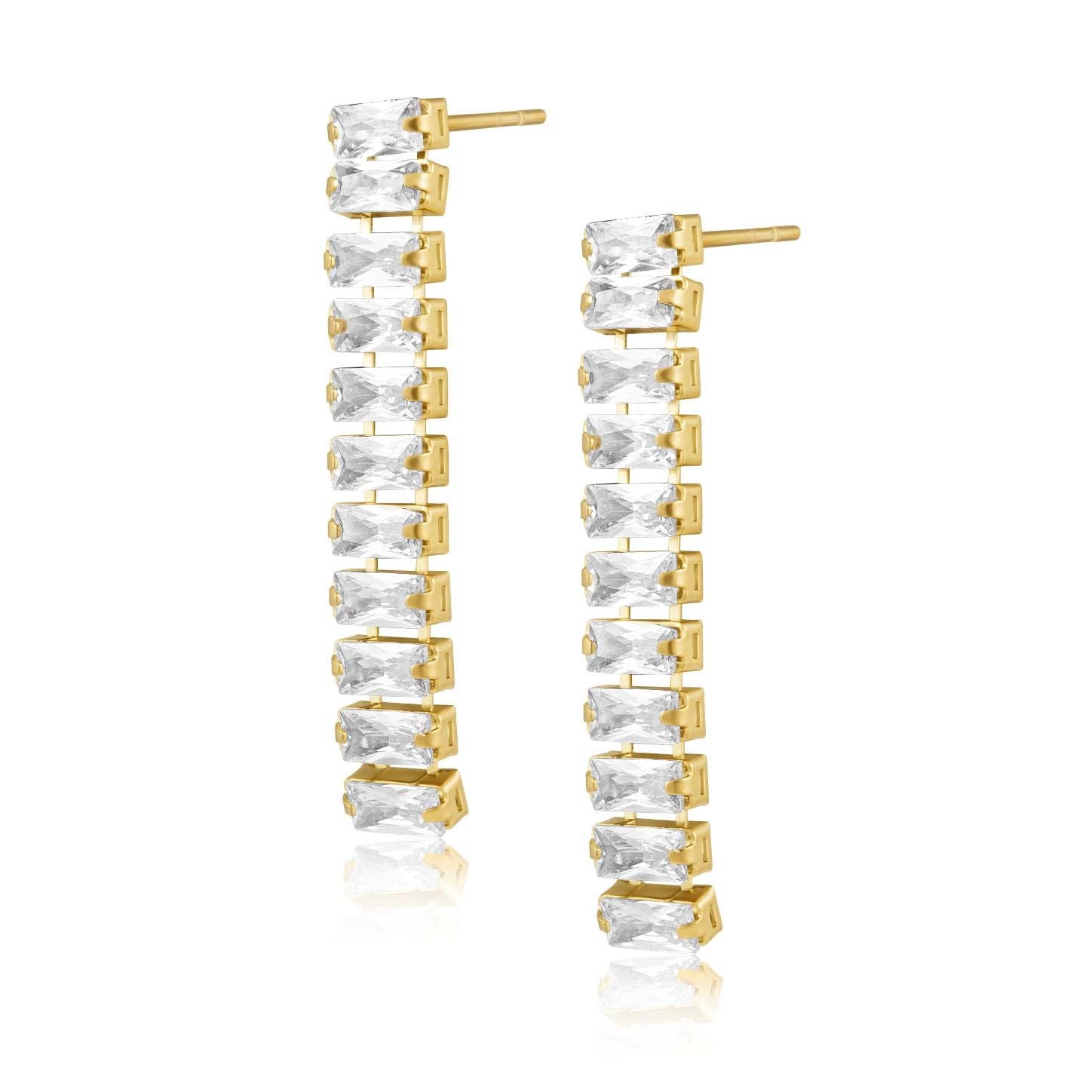 Goditi rendere ogni giorno alla moda con questi orecchini leggeri. Super eleganti e versatili. * Placcati in oro 18k su acciaio inossidabile * Pietre CZ * 3,3'' * Ipoallergenici * Resistenti all'acqua e all'ossidazione