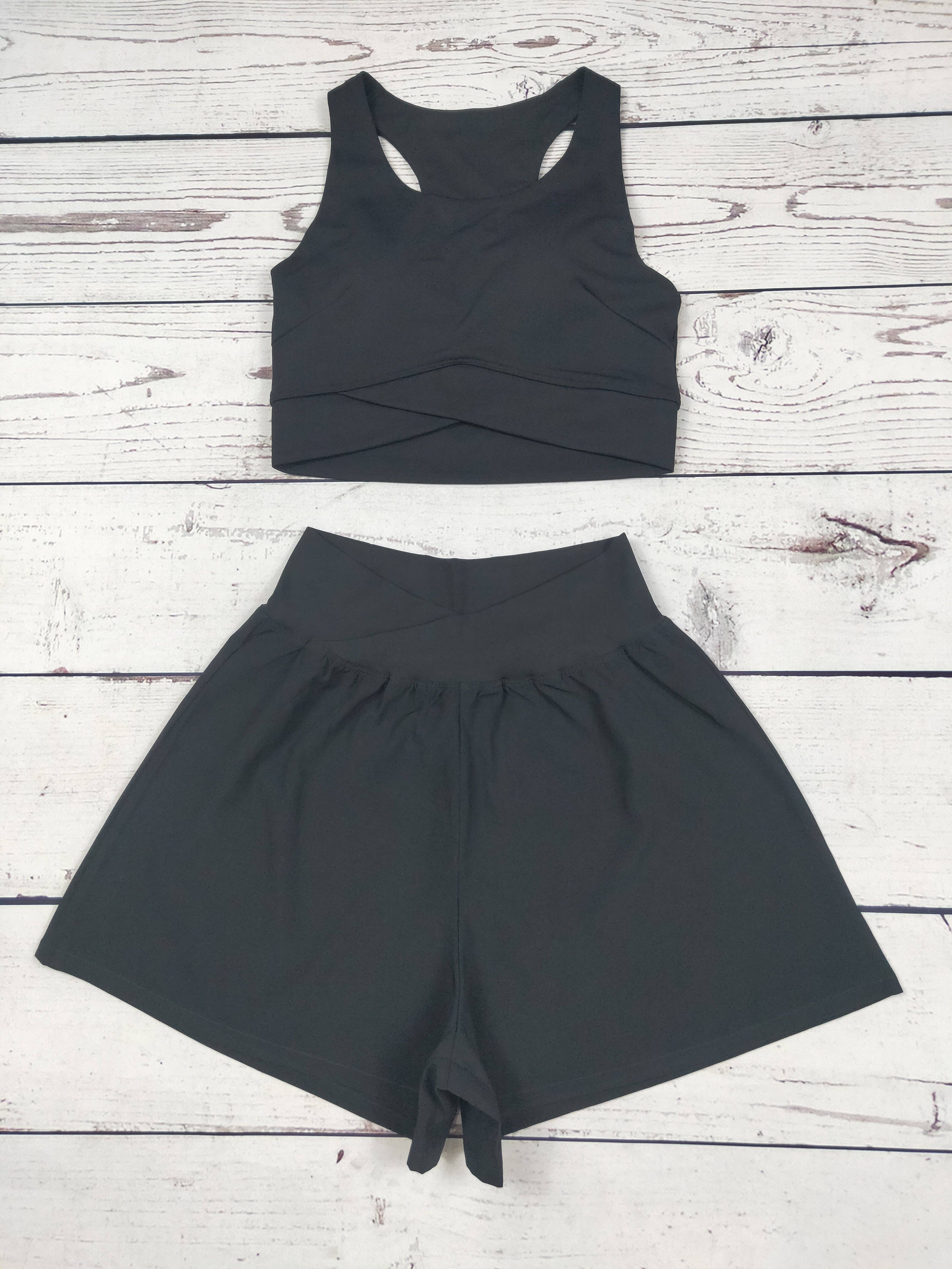 Ancora nessuna recensione per Set di abbigliamento sportivo con leggings corti mimetici.
