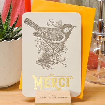 Un piccolo biglietto di ringraziamento che è il più carino possibile! Lamina dorata stampata su carta nebulizzata. Stampiamo tutti i biglietti di auguri presso la nostra tipografia interna con macchine tipografiche tradizionali. Biglietto pieghevole con interno bianco e custodia stampata in lamina. Si prega di notare che questa carta non può essere inviata tramite USPS, è meglio consegnarla a mano o allegata a un regalo. Progettato e stampato negli Stati Uniti.