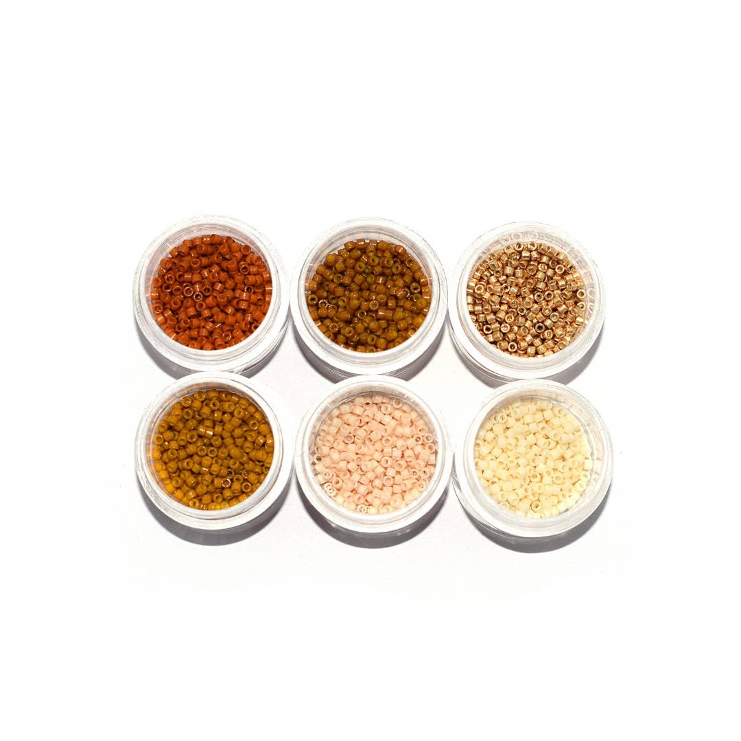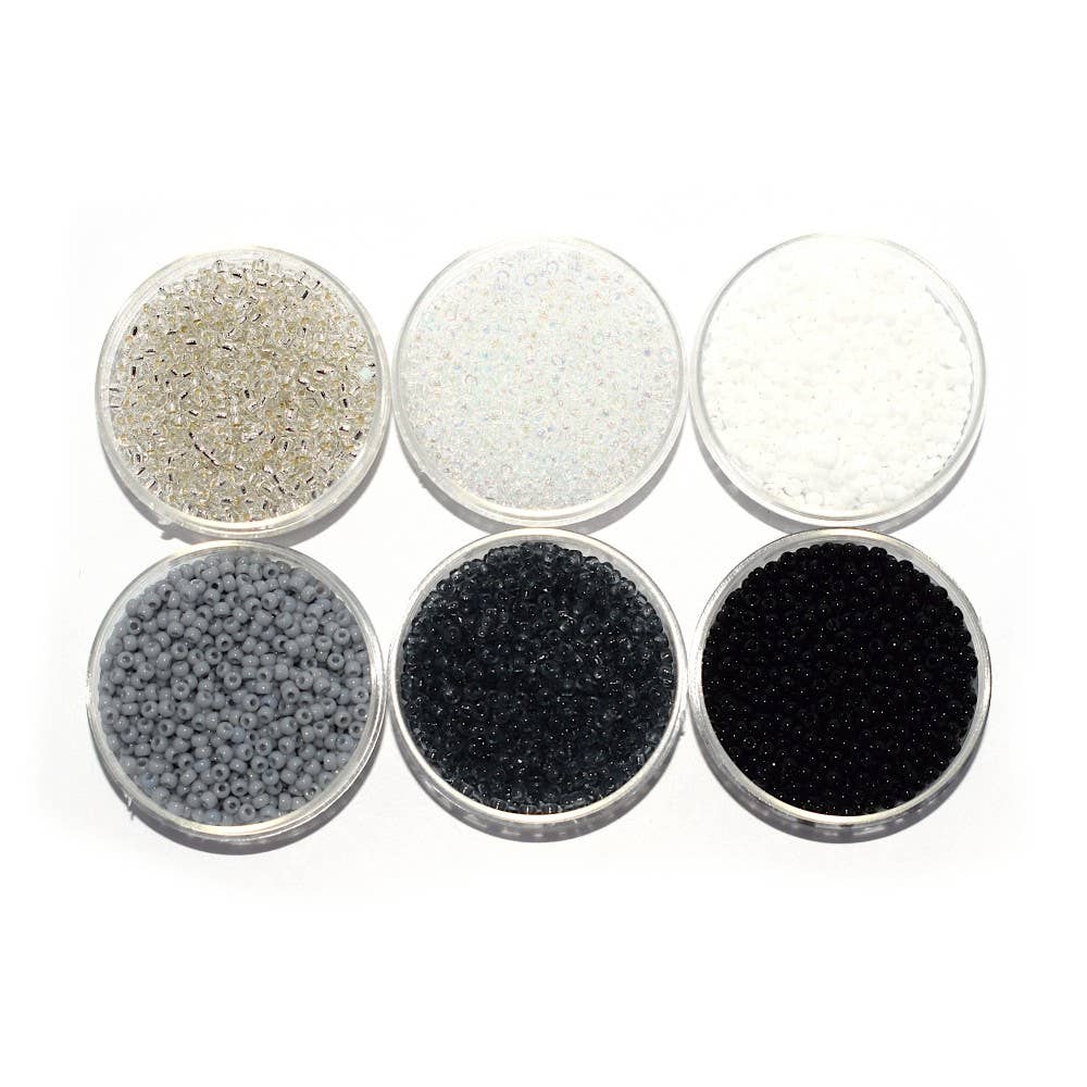Questo set include: - 5 g di Miyuki Delica 11/0 DB-1457 - 5 g di Miyuki Delica 11/0 DB-72 - 5 g di Miyuki Delica 11/0 DB-210 - 5 g di Miyuki Delica 11/0 DB-265 - 5 g di Miyuki Delica 11/0 DB-256 - 5 scatole avvitabili in plexiglas trasparente