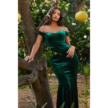 CH139 - Realizzato in un lussuoso velluto elasticizzato, questo abito regale può essere incorporato in qualsiasi festa nuziale o evento serale successivo. Una morbida scollatura a cuore permette agli spallacci esterni di scivolare dalla parte superiore del braccio. La silhouette a clessidra si adatta come un guanto al corpo prima di svasare fino al ginocchio.