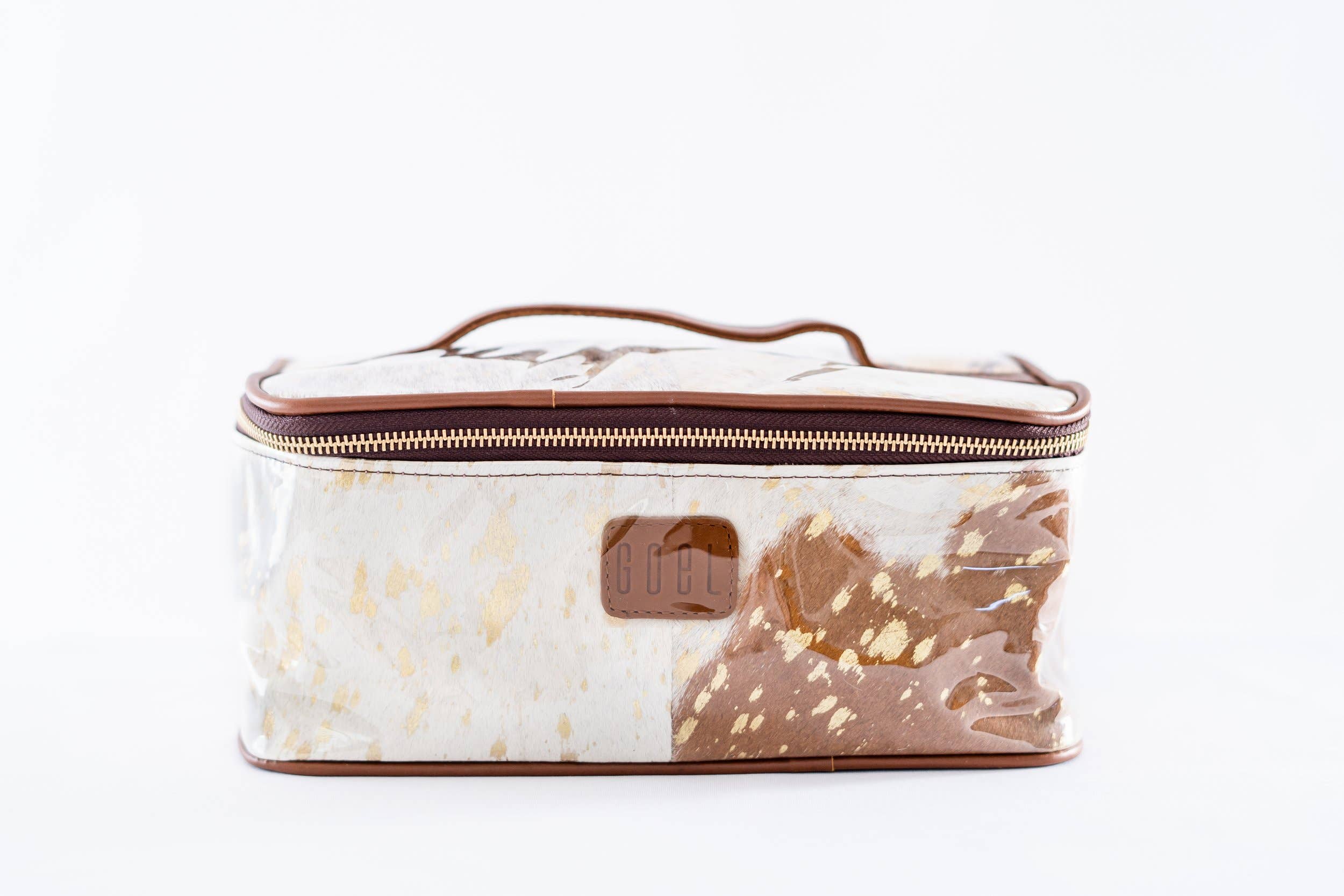 Questa spaziosa borsa da viaggio stupirà sicuramente. * L'elegante design degli interni ospita qualsiasi cosa, dagli articoli da toeletta, al trucco, ai prodotti per capelli * Le superfici interne resistenti possono essere facilmente pulite * Cerniere esterne e interne in pelle * Dimensioni: 9,75 «l x 6 «h x 5" p