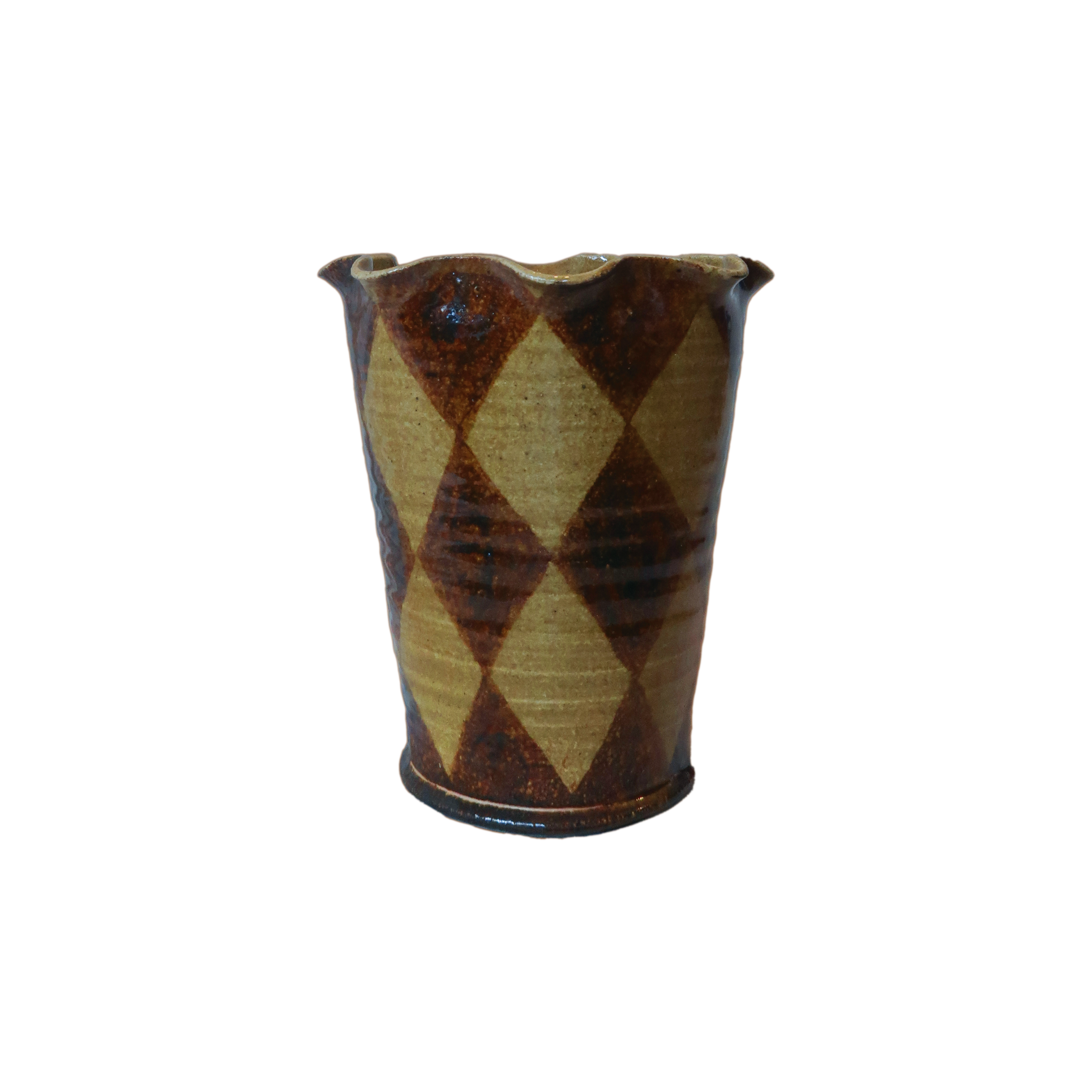 Vaso e sottovaso in terracotta con bordo ondulato