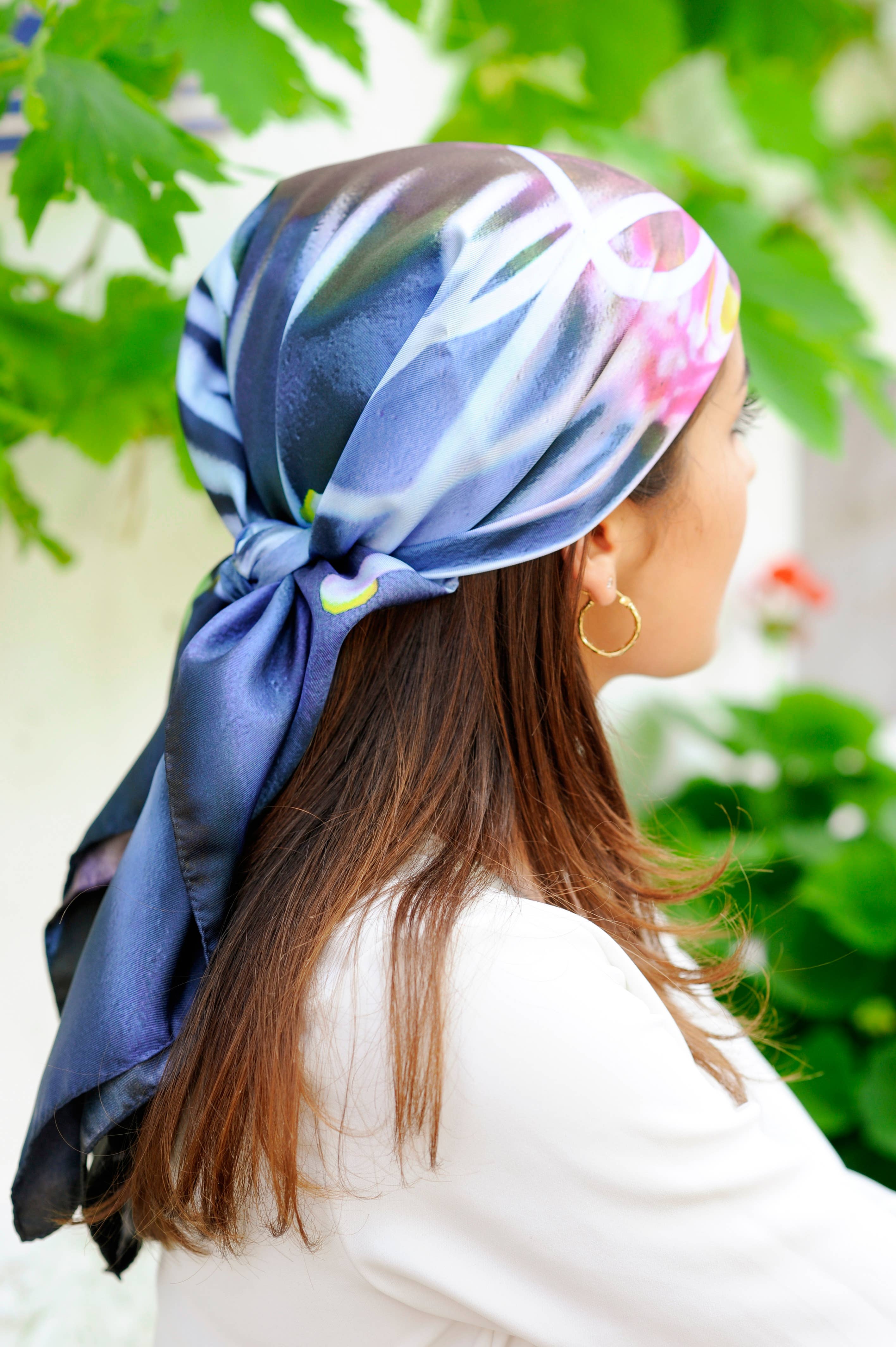 Aggiungi un tocco e un po' di colore disegnati a mano al tuo outfit con la nostra sciarpa Illusion! Con un motivo astratto disegnato a mano e un look trasparente, la nostra sciarpa leggera e setosa in georgette illusion si adatta perfettamente alla tua pelle. Stampato su georgette riciclata Stampa doodle disegnata a mano Elegante, lussuosamente morbido, leggero e confortevole. Realizzato a mano in tessuto Georgette leggero Ogni sciarpa è stampata con inchiostri ecologici e un disegno disegnato a mano da Ilke, maneggiata con cura e rifinita con un orlo a spillo. Indossalo come bandana, foulard o avvolgilo intorno al collo!