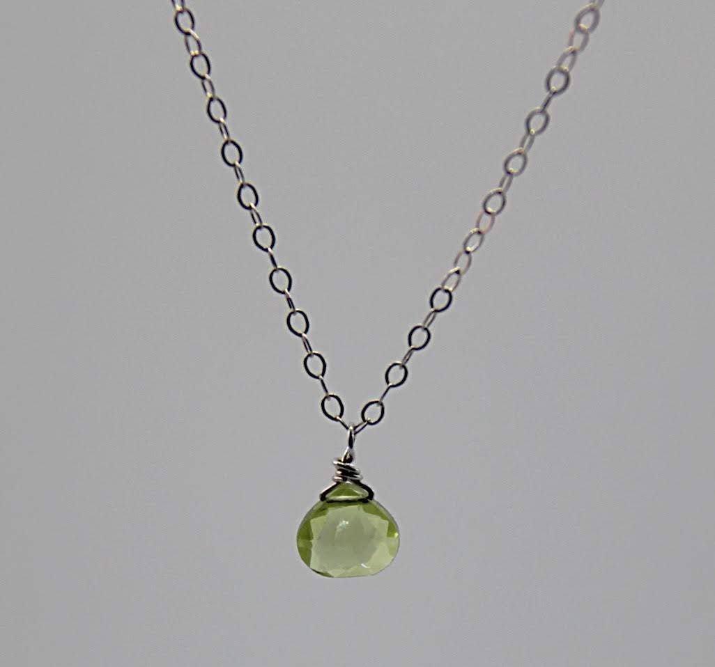 Collana a graffetta asimmetrica in argento Sterling con gemma a goccia 8x11 mm Circa 17" più estensione