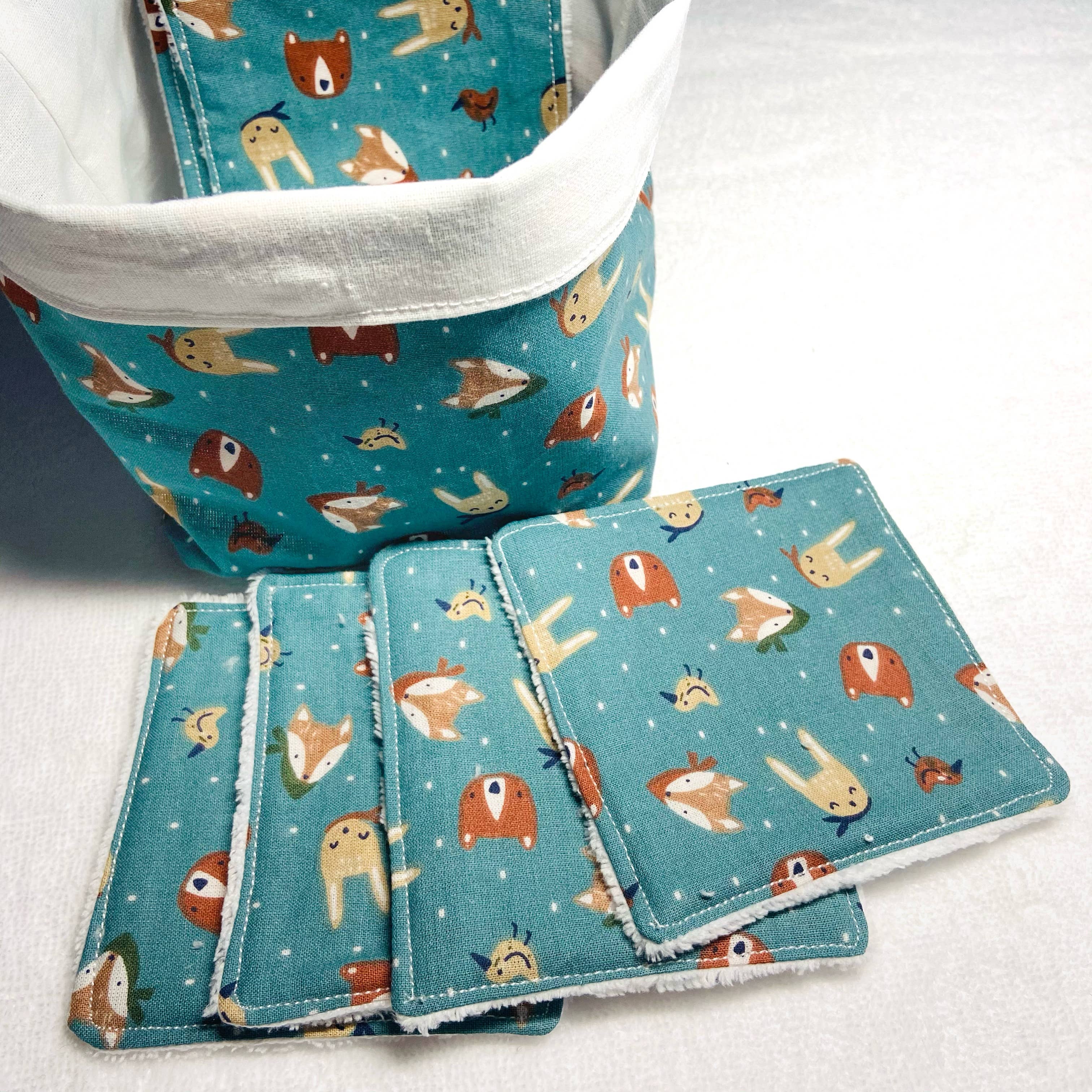 Salviette lavabili con un lato in cotone stampato e un lato in spugna di bambù biologico al 100%. Ideale per rimuovere delicatamente il trucco o per pulire il bambino. Una salvietta misura circa 10 x 10 cm.