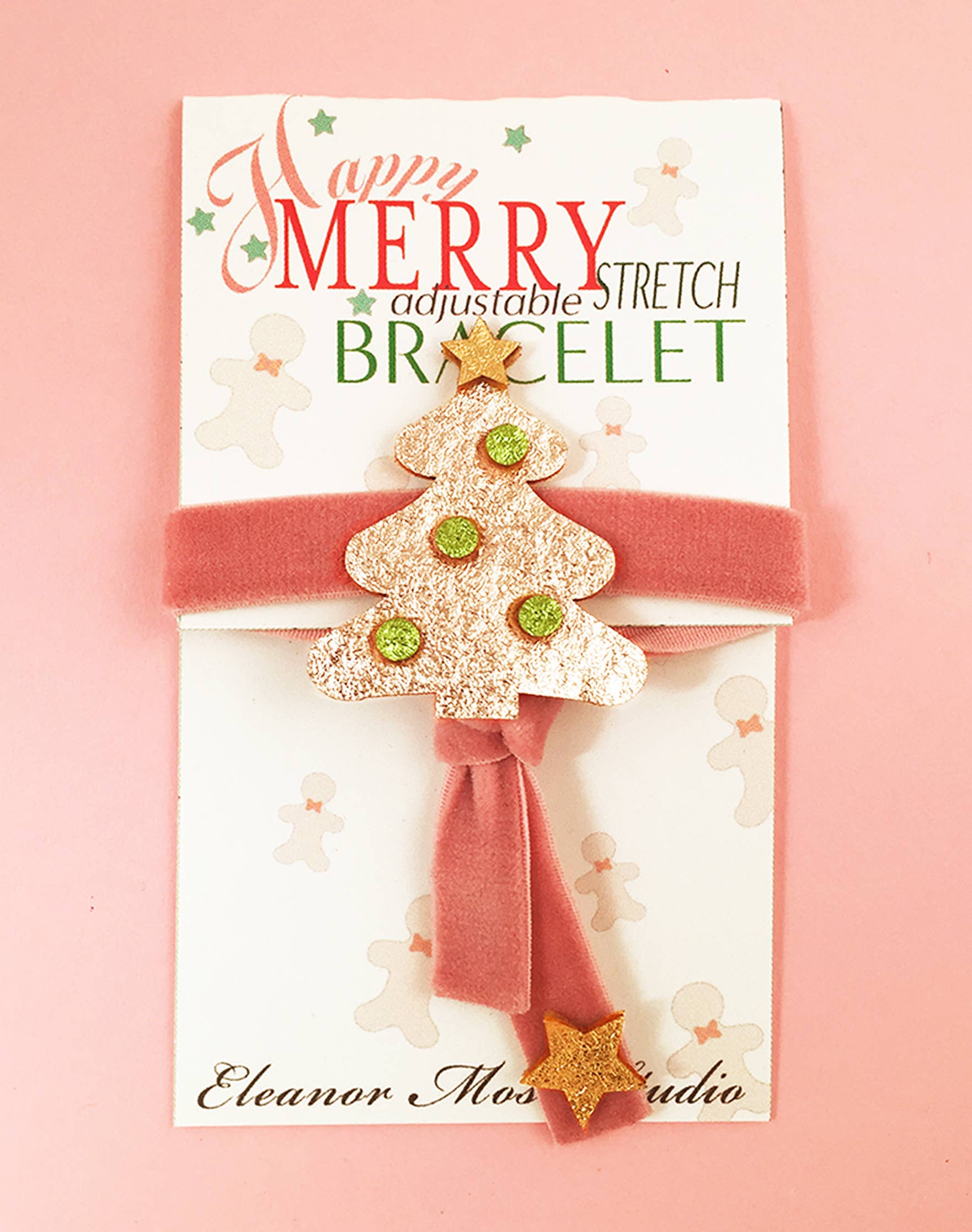 Il nostro braccialetto Happy Merry Holiday!!! Vogliamo tutti dondolare intorno a questo albero di Natale verde! Il nostro bracciale con albero in oro bianco fa parte della nostra nuova collezione Natural. Sono caratterizzati da una lamina metallica in oro bianco su feltro di lana al 100% sulla parte superiore di un braccialetto in velluto elasticizzato regolabile. Il nodo scorrevole del bracciale si regola e si allunga per una facile regolazione con un dettaglio a stella dorata sulle cravatte. È l'aggiunta perfetta a qualsiasi outfit natalizio. HOLIBR-003 Realizzato in feltro di lana 100% e velluto elasticizzato Pulire delicatamente con un panno umido Realizzato a mano con amore da Eleanor Moss Studio di Filadelfia