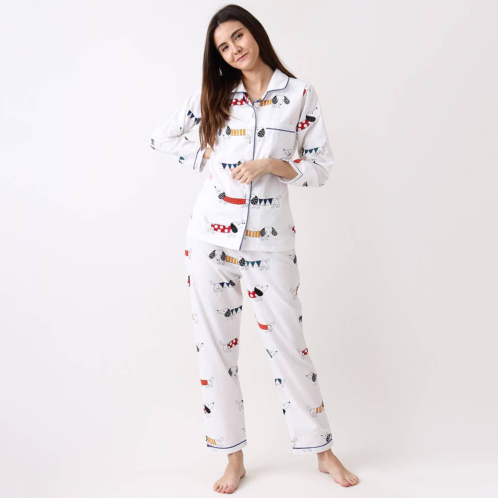 Aggiungi una dose di stile giocoso al momento di andare a dormire con questo top e pigiama con colletto dentellato in cotone organico super sottile e traspirante con la nostra amata stampa. Include un top con colletto dentellato a maniche lunghe super morbido e pigiama coordinato, con cordoncini a contrasto Vita morbida ed elastica sul pigiama Possibilità di personalizzazione sulla tasca del top Splendidamente confezionato nel nostro sacchetto regalo in tessuto abbinato (pronto per essere regalato!) Disponibile da XS-XL.