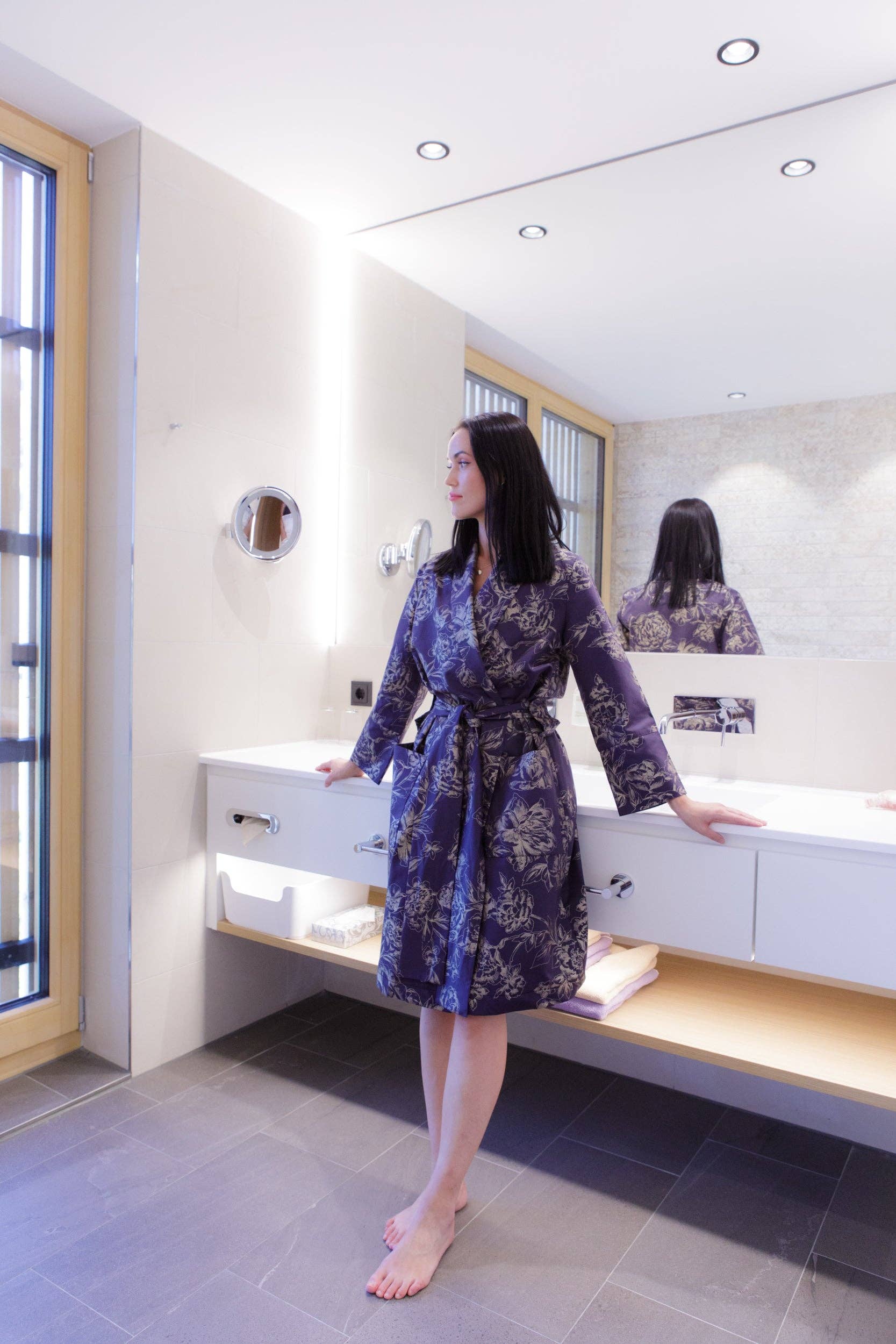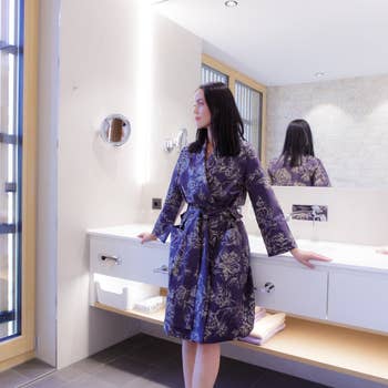 colore 699 enora blu composizione 100% micropoliestereVestaglia a maniche corte abbottonata con cintura modello 130117 colore 699 enora blu composizione 100% micropoliestere