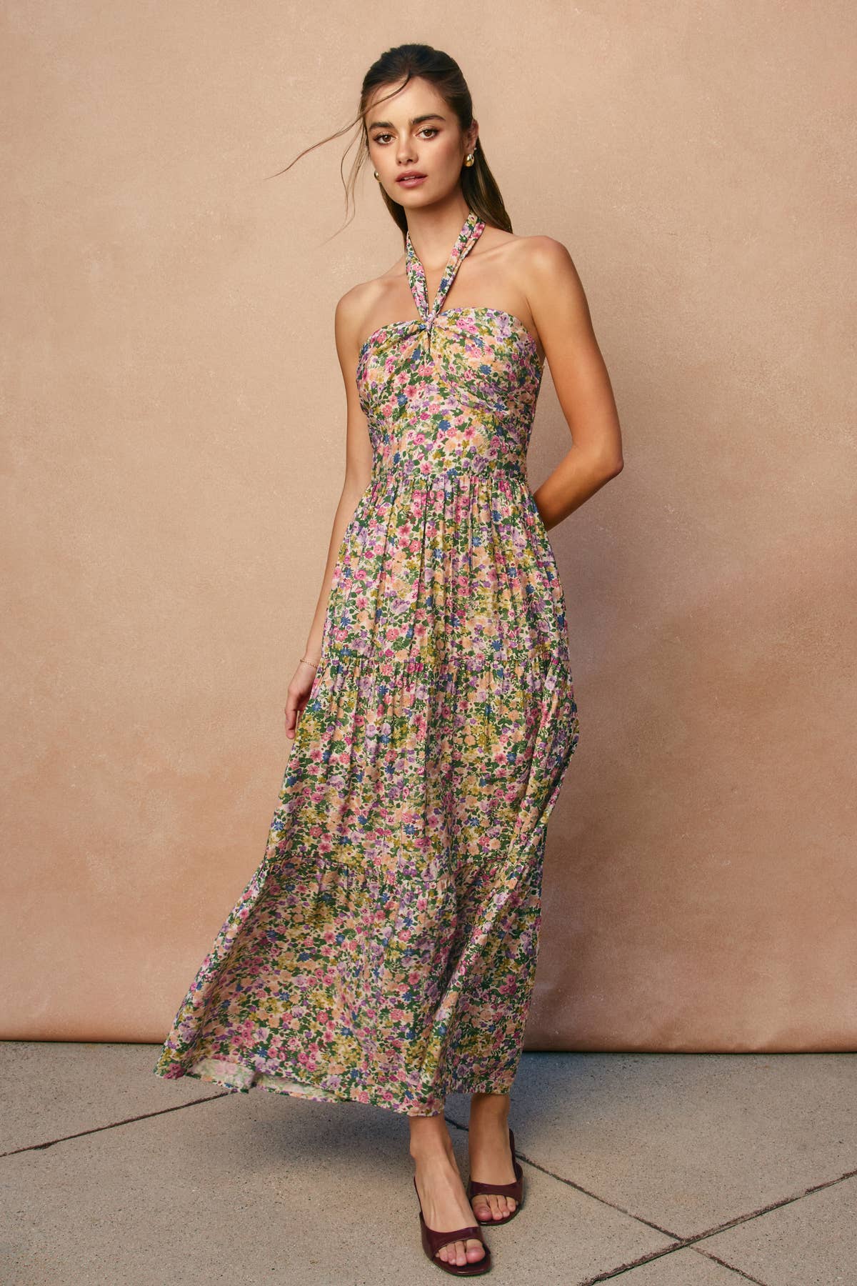 FD12411-CP175 Abito maxi in cotone con scollo all'americana. La modella editoriale è alta 5'8" e la modella ecomm è alta 5'9". Entrambe indossano la taglia Small. - Laccio al collo all'americana - Fascia elastica in vita sul retro - Da infilare - Abito stile tenda - Non foderato Esterno: 100% Cotone Fodera: Nessuna