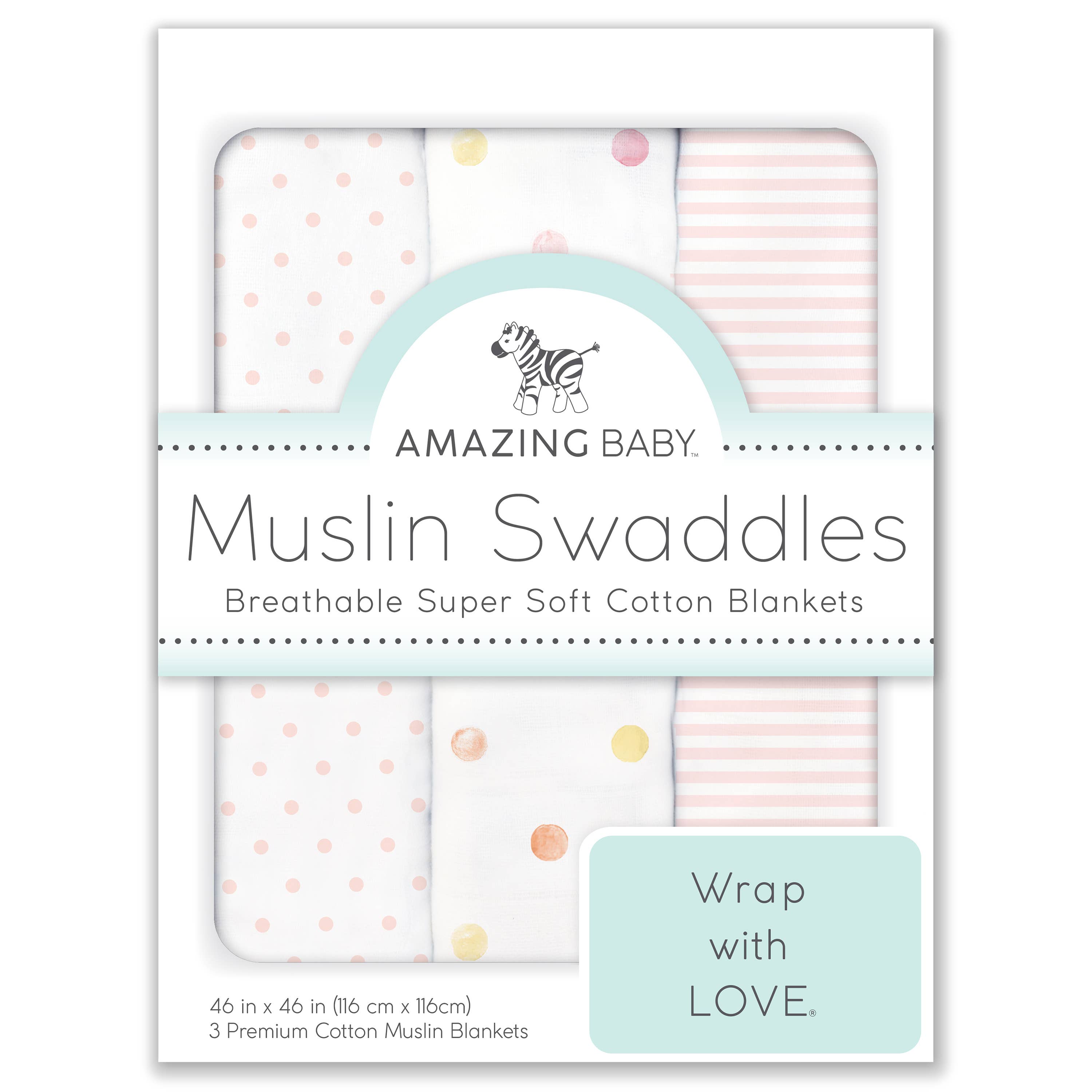 Il nostro grazioso assortimento di fasce in mussola manterrà il bambino comodo durante i mesi più caldi, e le coperte in mussola sono utili tutto l'anno per molti usi oltre le fasce. Possono essere utilizzati come tappetino da gioco per la pancia, come copriletto per la privacy per nutrire il bambino, un parasole o un panno per ruttare sopra la spalla di mamma o papà. Le coperte SwaddleDesigns in mussola sono realizzate con filati di cotone di alta qualità per garantire una lunga durata. Usiamo coloranti senza AZO e inchiostri europei per le nostre stampe di design che il nostro fondatore disegna a mano o dipinge da sola. Il nostro fondatore è infermiera e mamma di due persone, e crea le stampe per le nostre coperte con amore nel suo cuore per accogliere i neonati con gioia. Lei ama semplicemente i bambini! Ogni singolo articolo che progetta è realizzato pensando al meglio dell'interesse del bambino e al tuo stile. Etichetta SwaddleClub cucita sulla coperta 123 Etichetta Swaddle cucita alla coperta 100% mussola di cotone. 46 x 46 pollici (116 x 116 cm) Lavabile in lavatrice Importati