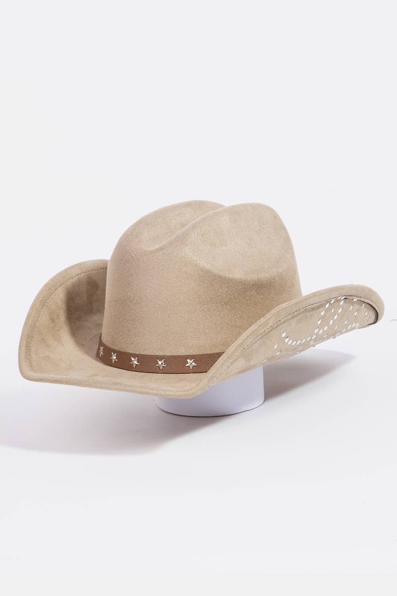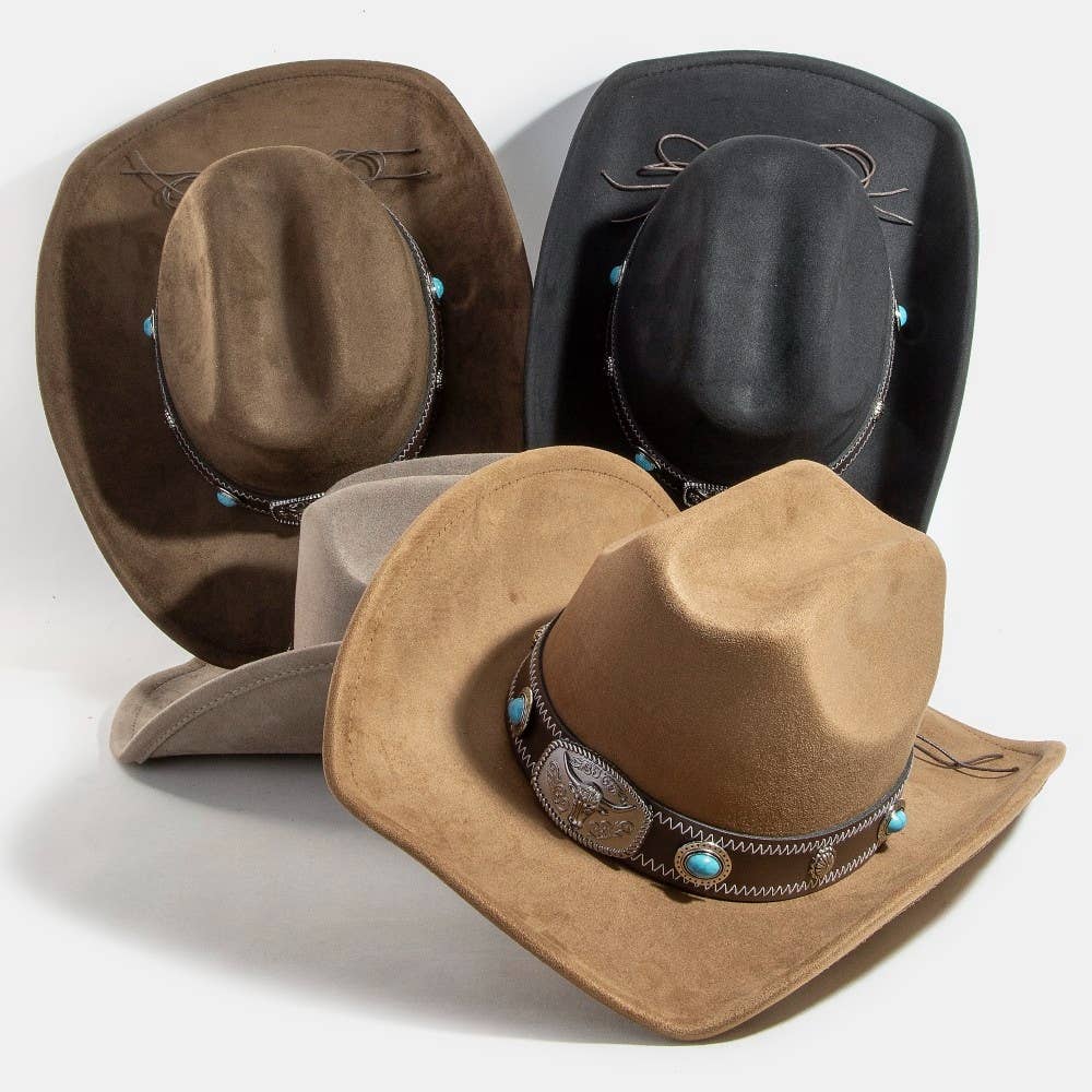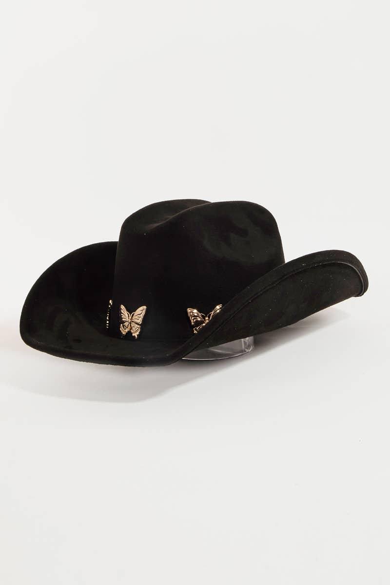 Cappello da Cowboy Occidentale Morbido con Ciondoli a Farfalla Metallica