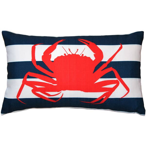 Questo versatile cuscino in stile nautico presenta un'aragosta rossa acceso posta contro il classico tema marino delle strisce bianche e marine. Questo cuscino colorato è un meraviglioso accento estivo per la tua casa. Include sia federa che inserto (fodera sfoderabile). Pesa 3 libbre.