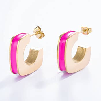 Orecchini in acciaio inox disponibili in finitura argento o oro, con diametro di 39 mm. Sono ipoallergenici, resistenti all’acqua e non scoloriscono nel tempo.