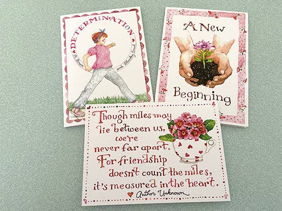 Divertirsi è bello! Set di 12 biglietti Susan Branch con buste. I biglietti misurano 4,25" x 6". A colori con l'arte di Susan sul davanti, sul retro e all'interno delle carte.