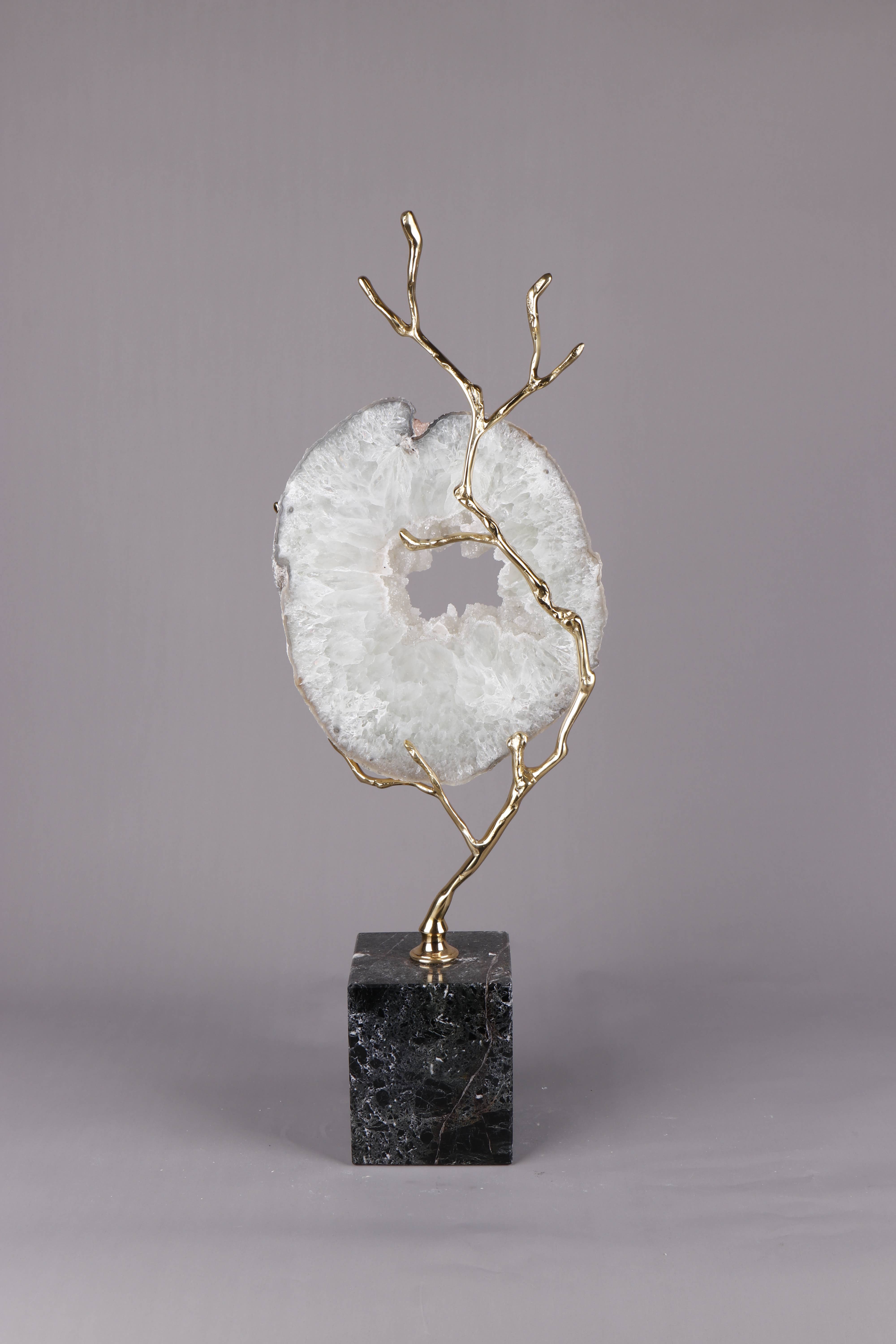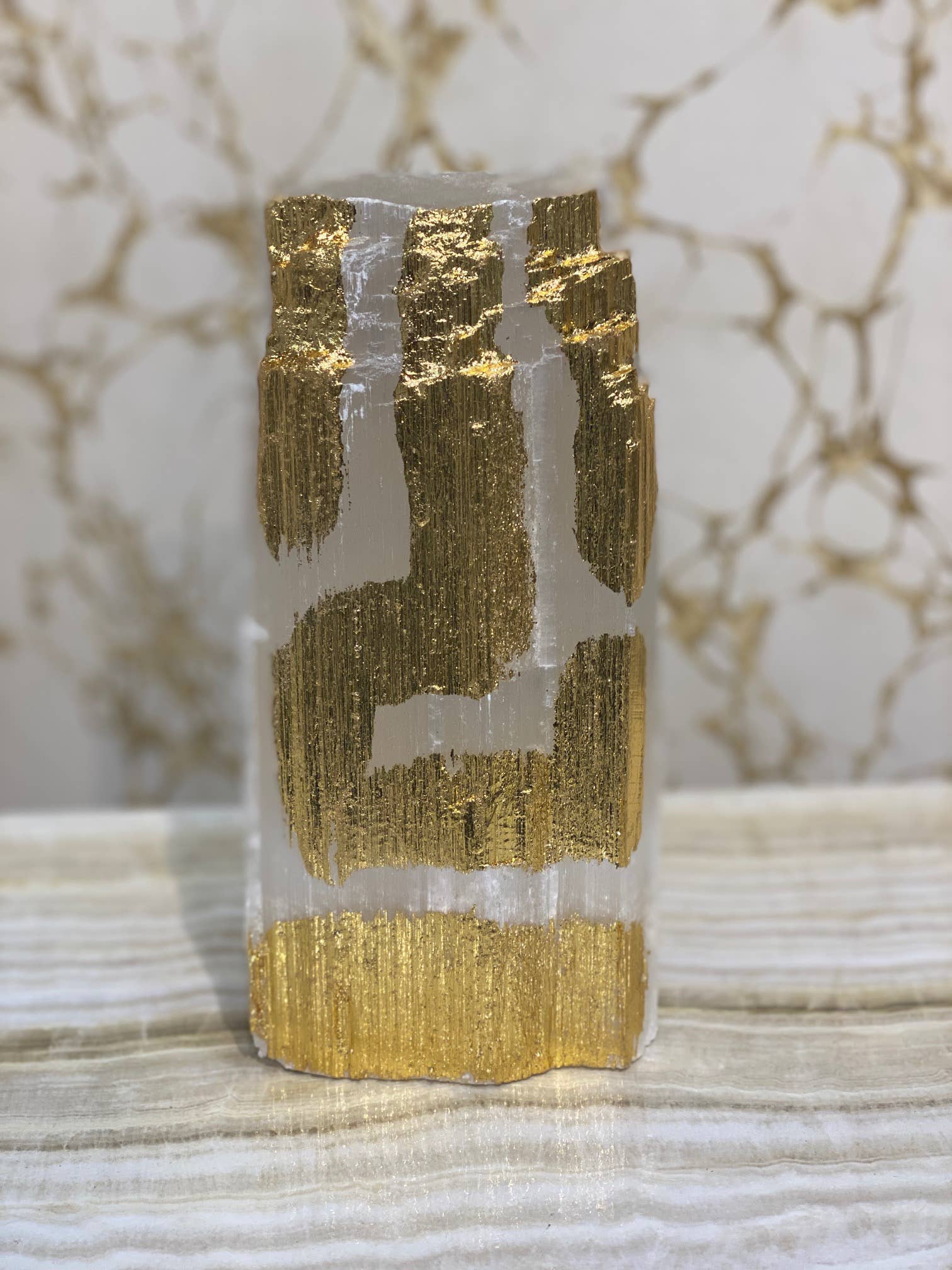 Portatovaglioli con base in vetro con selenite bianca. Set di 4 pezzi in confezione regalo nera