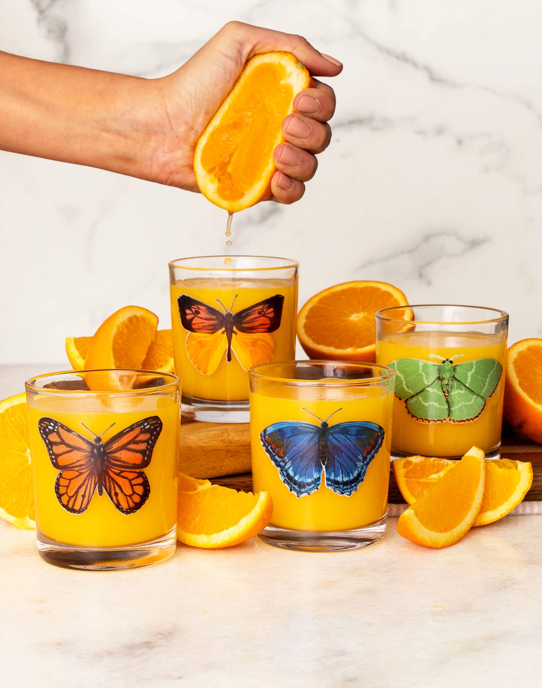 Goditi la bellezza della natura con il nostro set di bicchieri Pollinators Short Juice. Ogni bicchiere presenta un diverso e delicato motivo illustrato a mano che include farfalle monarca, api ronzanti, fiori dolci ed erbe aromatiche raggruppate. Perfetti da regalare agli amanti della natura, agli appassionati delle api o agli appassionati di farfalle, ti divertirai a sorseggiare succo di frutta, latte o acqua in questi affascinanti bicchieri. Formato | Set 4 bicchieri Juice Caratteristiche | Quattro disegni dipinti a mano stampati su vetro Dimensione | 7,44 oz Istruzioni per la cura | Lavare solo a mano