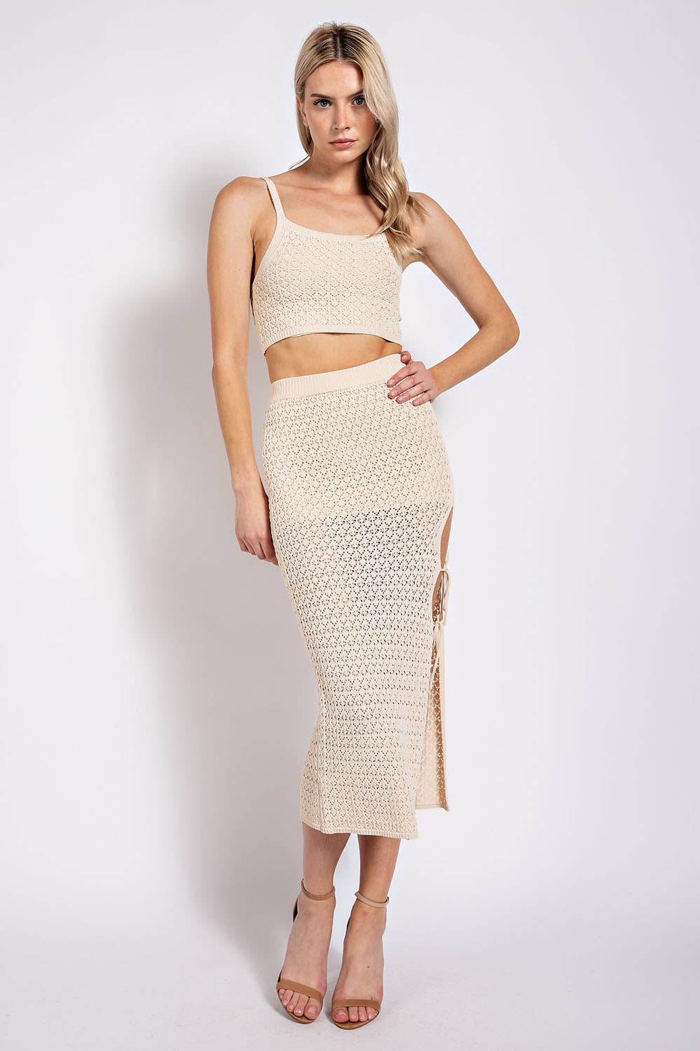 SET GONNA MIDI A MAGLIA A CONTRASTO OPENWORK CON TT6254 VENDUTO SEPARATAMENTE *Stile n. TS6256 *Stile Top Abbinato: TT6254 *Composizione del Tessuto: 55% ACRILICO 45% COTONE