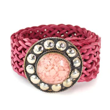 Cintura intrecciata in pelle autentica di colore marrone. La sua fibbia rotonda in ottone dorato è decorata con una stella di madreperla di colore beige. Gancio close per adattarlo a qualsiasi taglia. Misure: 160 cm per 5 cm di larghezza estate boho cowboy festa della mamma regali per insegnanti