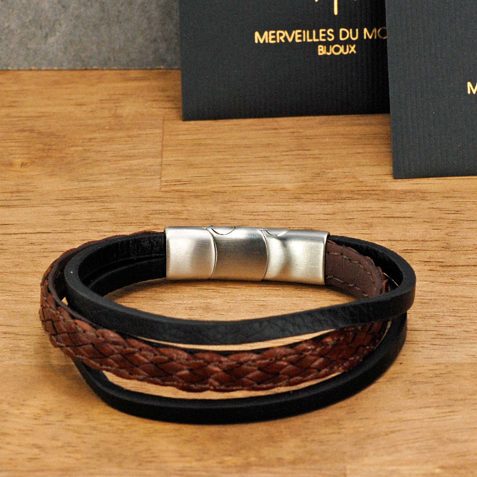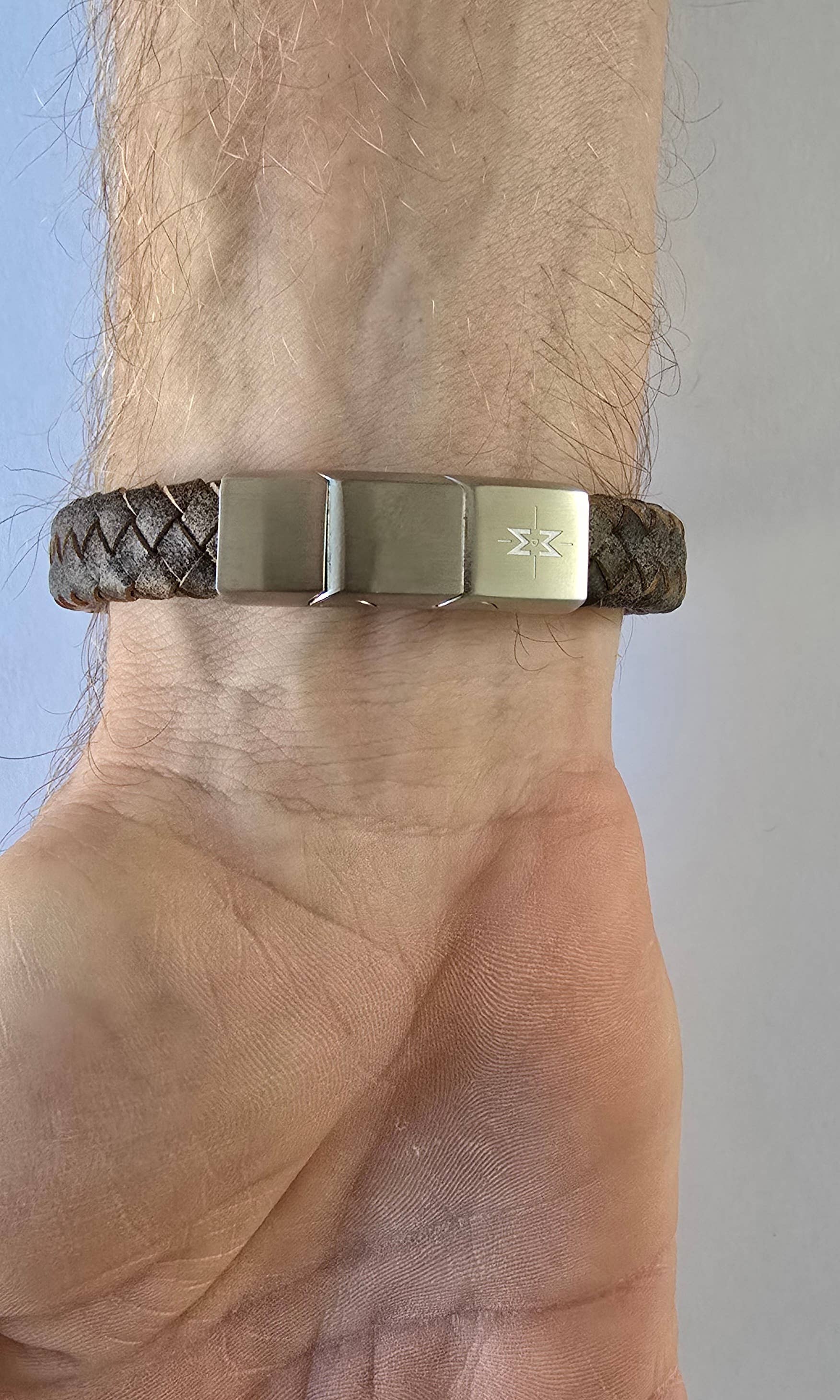Bracciale da uomo in pelle e acciaio inox