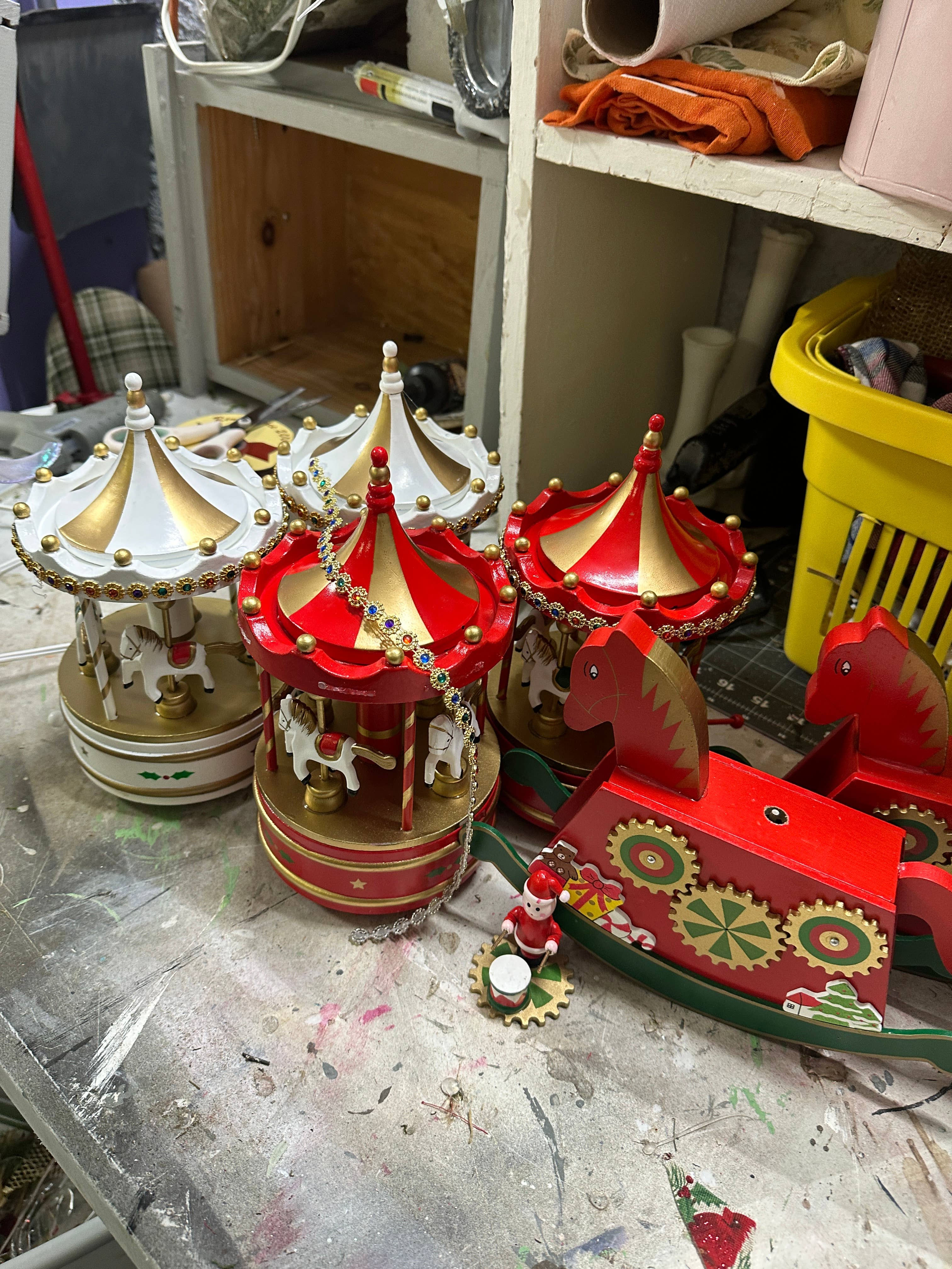 Giostra Rotante 9 pollici Figurina Musicale di Natale in Legno