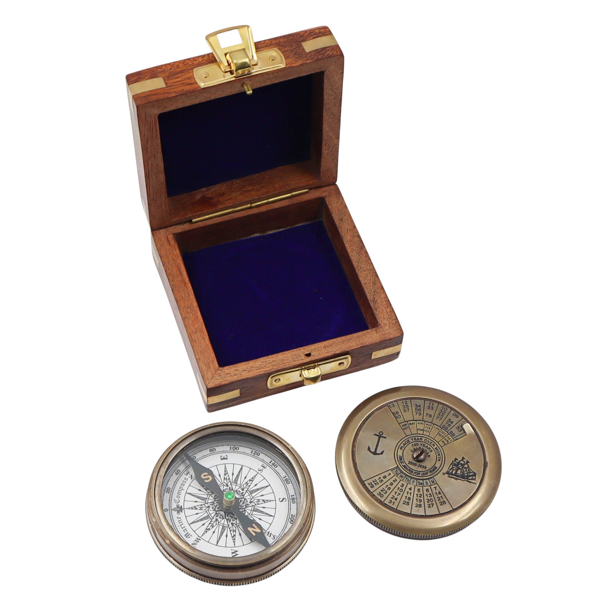 Bussola solare tascabile in ottone da 2 pollici con scatola di legno all'ingrosso
