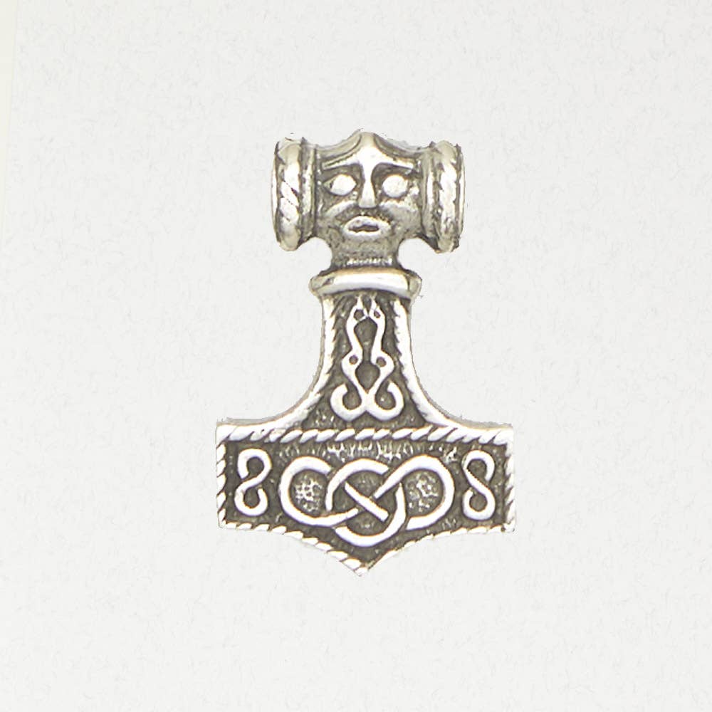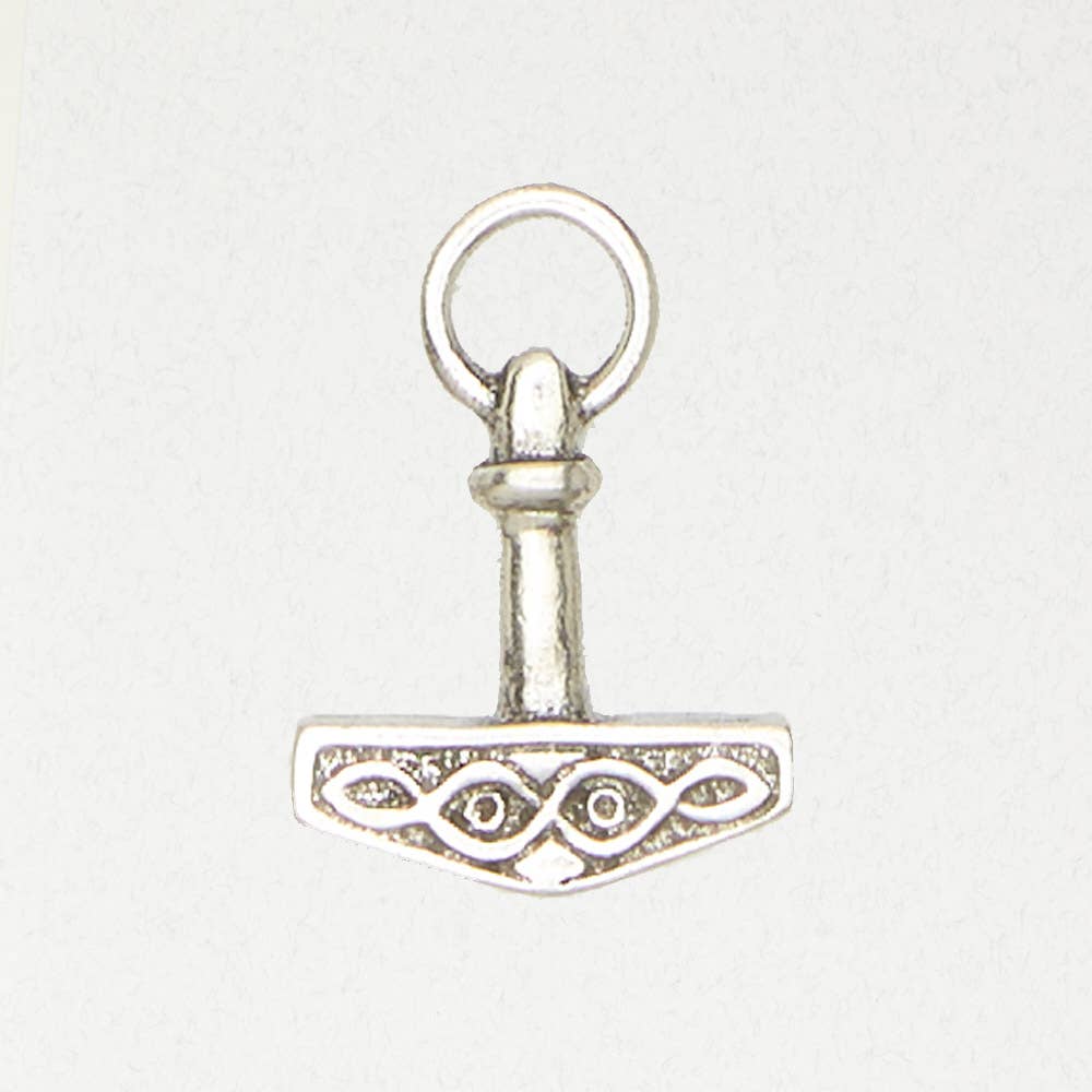 ODIN - La collezione norrena - THOR'S HAMMER Il dio nordico del tuono Thor portava, come arma prescelta, il martello chiamato Mjollnir. Si credeva che i colpi di quel martello fossero la causa del fulmine. Si diceva che fosse abbastanza potente da rompere le montagne e che tornasse sempre nelle mani di Thor dopo essere stato lanciato. Il martello di Thor è un simbolo del potere di un guerriero; sebbene Thor stesso fosse conosciuto non per il suo potere, ma per la sua capacità di sopportare il dolore senza lamentarsi, e per la sua forza e generosità. I ciondoli sono forniti su carte Legend in carta riciclata con un cordoncino nero lungo 33 pollici. Peltro fine senza piombo.