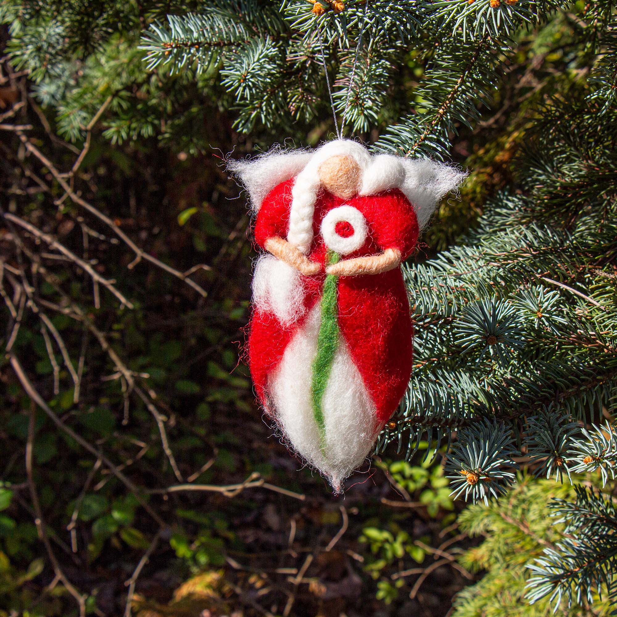 Angelo o Fata, la magia è pura. Realizzato a mano da artigiane in Nepal. * Misura approssimativamente: 7 pollici x 4,5 pollici. * 100% Lana Naturale della Nuova Zelanda. * Coloranti senza azo. * A causa della natura artigianale, lievi variazioni nelle dimensioni, nel colore esatto, nella forma, nel motivo o in altre caratteristiche possono essere evidenti. Ogni pezzo è veramente un'opera d'arte unica, amorevolmente realizzata a mano. L'Arte dell'Infeltrimento: Il primo passo per creare questi bellissimi pezzi di feltro inizia con la raccolta di una delle migliori lane di pecora del mondo dalla Nuova Zelanda. Fare la lana infeltrita è un processo antico e dispendioso in termini di tempo che consiste nel legare il tessuto con la fibra. Questo è un lavoro fisico in cui l'artigiano strofina, sfrega, arrotola e risciacqua la lana più e più volte con acqua saponata. Una volta che la lana è legata in un foglio e lo spessore desiderato è completo, il feltro viene steso ad asciugare. Da lì, la lana infeltrita viene tagliata e rielaborata in molte forme e disegni complessi. I molti fogli di lana possono fondere diversi colori per creare motivi e strati. Questo richiede un artigiano ben addestrato e talentuoso ed è un vero lavoro d'amore. I risultati finali sono tessuti colorati e unici nel loro genere che sono splendidi da vedere.