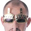 Occhiali con design a forma di mani che mostrano il dito medio, un accessorio provocatorio e divertente per feste.
